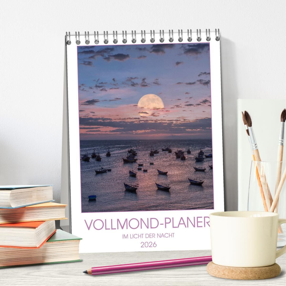 VOLLMOND-Planer - Im Licht der Nacht (Tischkalender 2026 DIN A5 hoch), CALVENDO Monatskalender