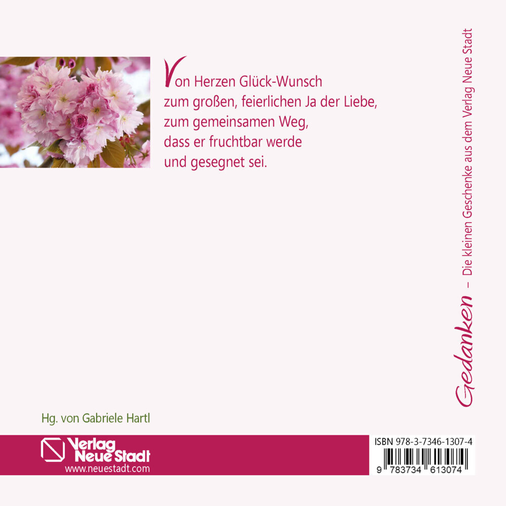 Ein Geschenk-Zeichen und Hochzeitskarte in einem: Zehn Texte mit ausgesuchten Fotos. Wie in allen GEDANKEN-Heften ist vorne Platz für einen kurzen persönlichen Gruß. Zusammengestellt und herausgegeben von Gabriele Hartl. Mit passendem Umschlag Autorentext Gabr...