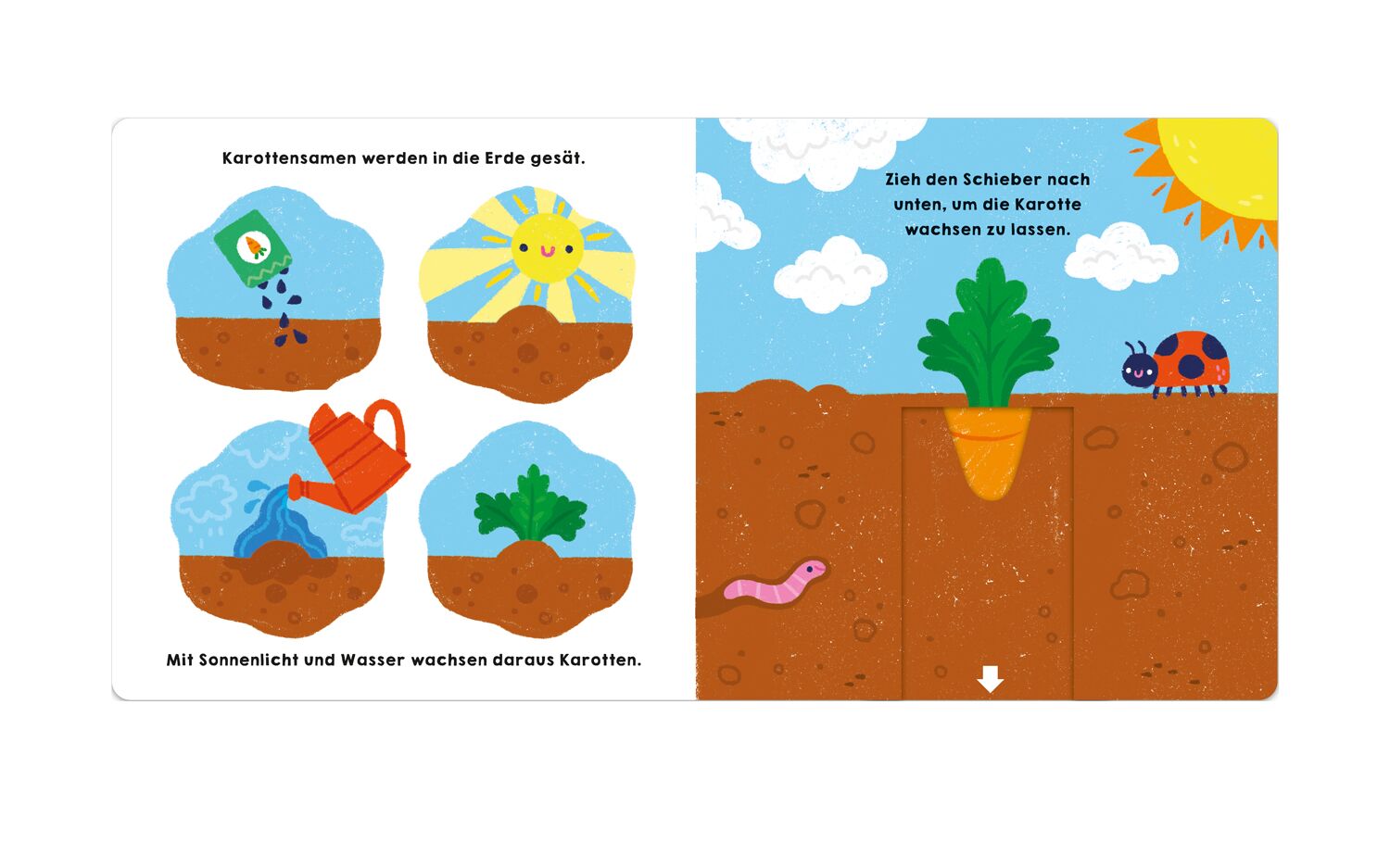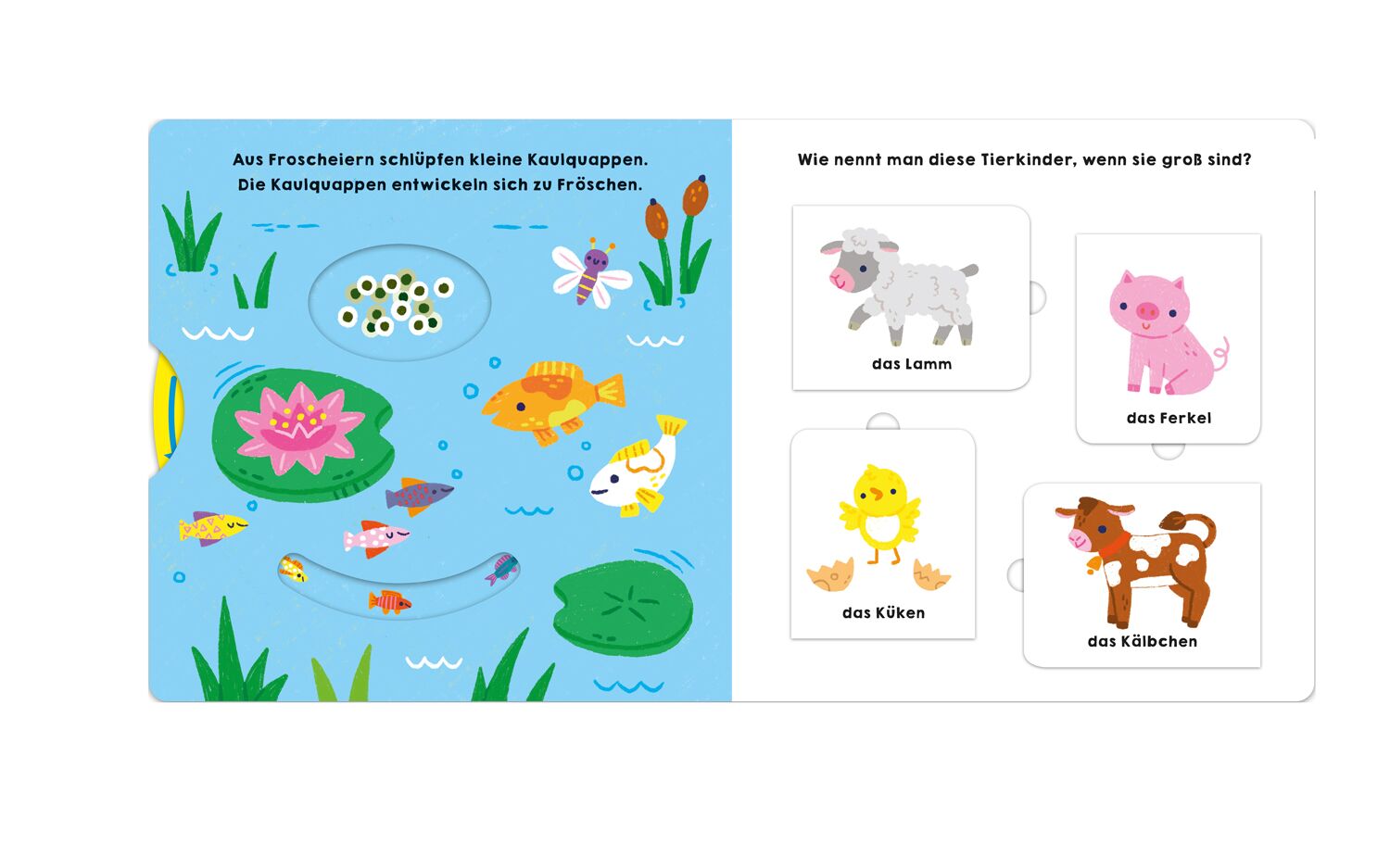 Ein interaktives Spielbuch mit vielen tollen Effekten für kleine Natur-Entdecker! Mit diesem animierenden Pappbilderbuch kommen kleine Forscher ab 18 Monaten voll auf ihre Kosten. Ob Lämmchen oder Kaulquappe, Möhrensamen oder Apfelblüte: Die Kinder drehen, kla...