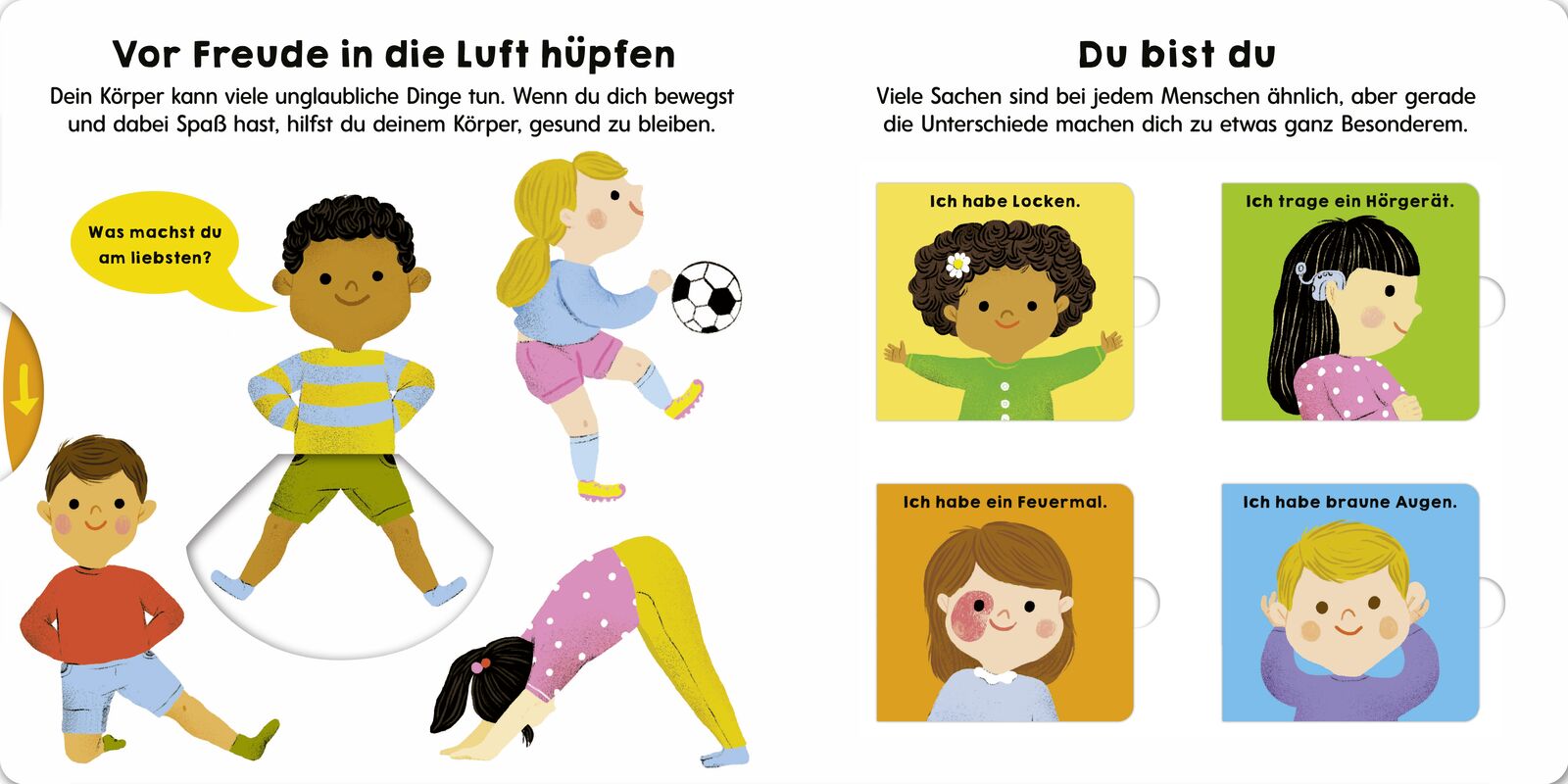 Ein erstes Körperbuch für die Kleinsten ab 2 Jahren! Was ist bei allen Menschen gleich und worin unterscheiden wir uns? Wie heißen die Körperteile? Und wie verschieden können Gefühle sein? Dieses spannende Spielbuch zeigt all dies in farbenfrohen und kindgere...