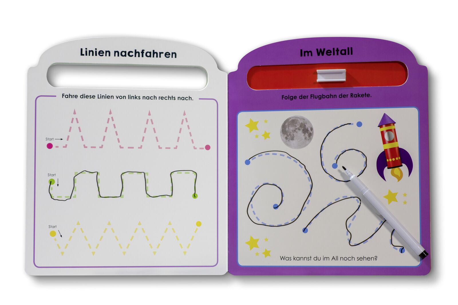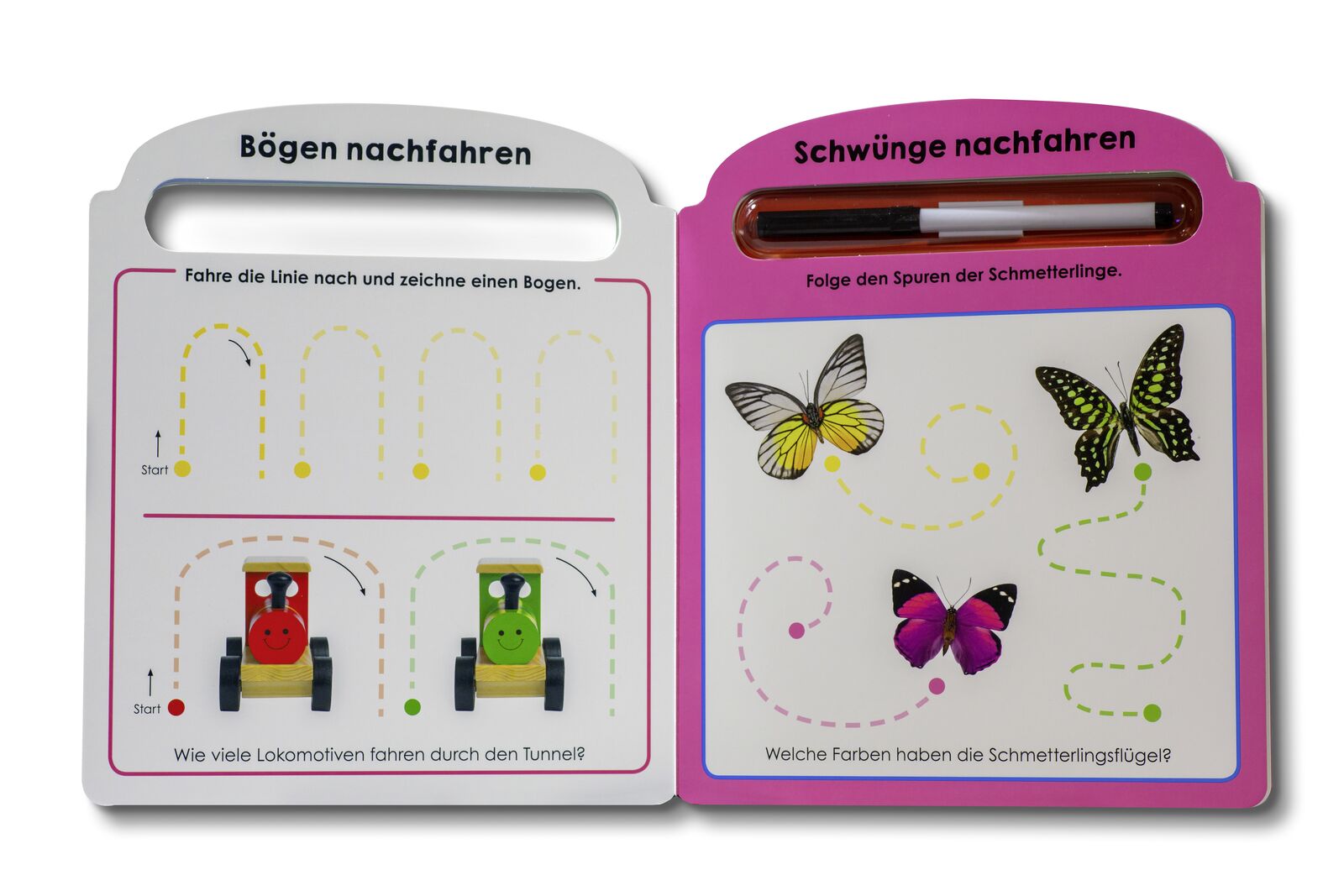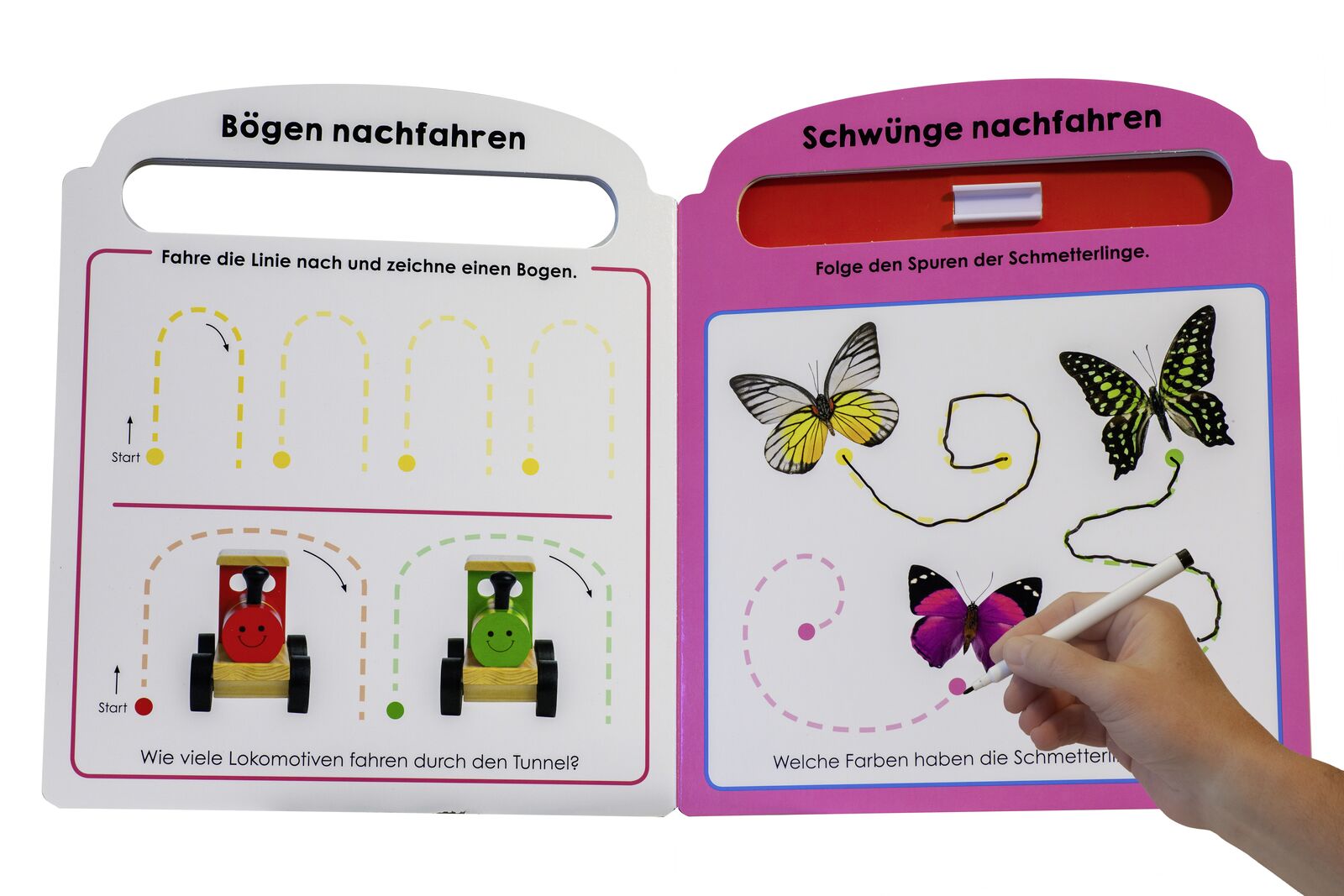 Ein stabiles Pappbilderbuch mit abwischbarem Stift zur Vorbereitung auf das Schreiben So geht spielerische Förderung zu Hause: Auf den bunten und fröhlichen Seiten dieses Buchs üben sich Kinder ab 3 Jahren im Umgang mit dem beiliegenden Stift. Sie schulen ihre...
