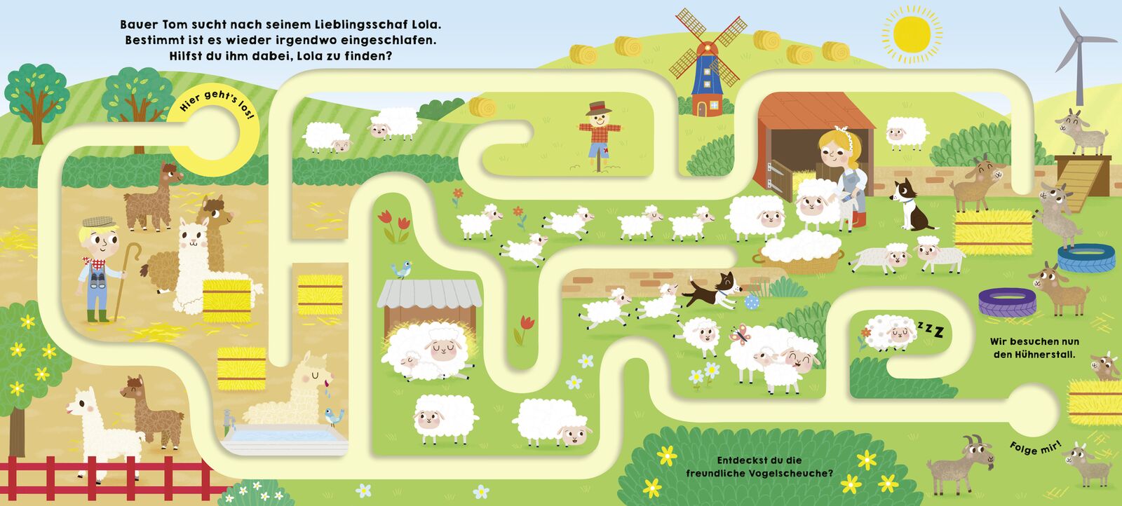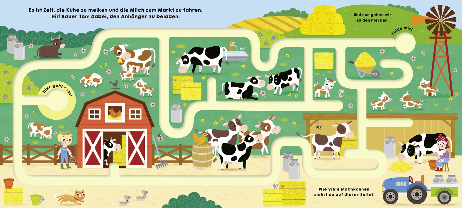 Glücksfisch: Mein Wimmel-Labyrinth: Auf dem Bauernhof Kunterbunter Wimmel-Fingerspuren-Spaß auf dem Bauernhof! Bauer Tom nimmt dich einen Tag mit auf den Bauernhof zu seinen Tieren. Steig auf seinen Traktor und fahre von Seiten zu Seiten auf Fingerspuren durch...