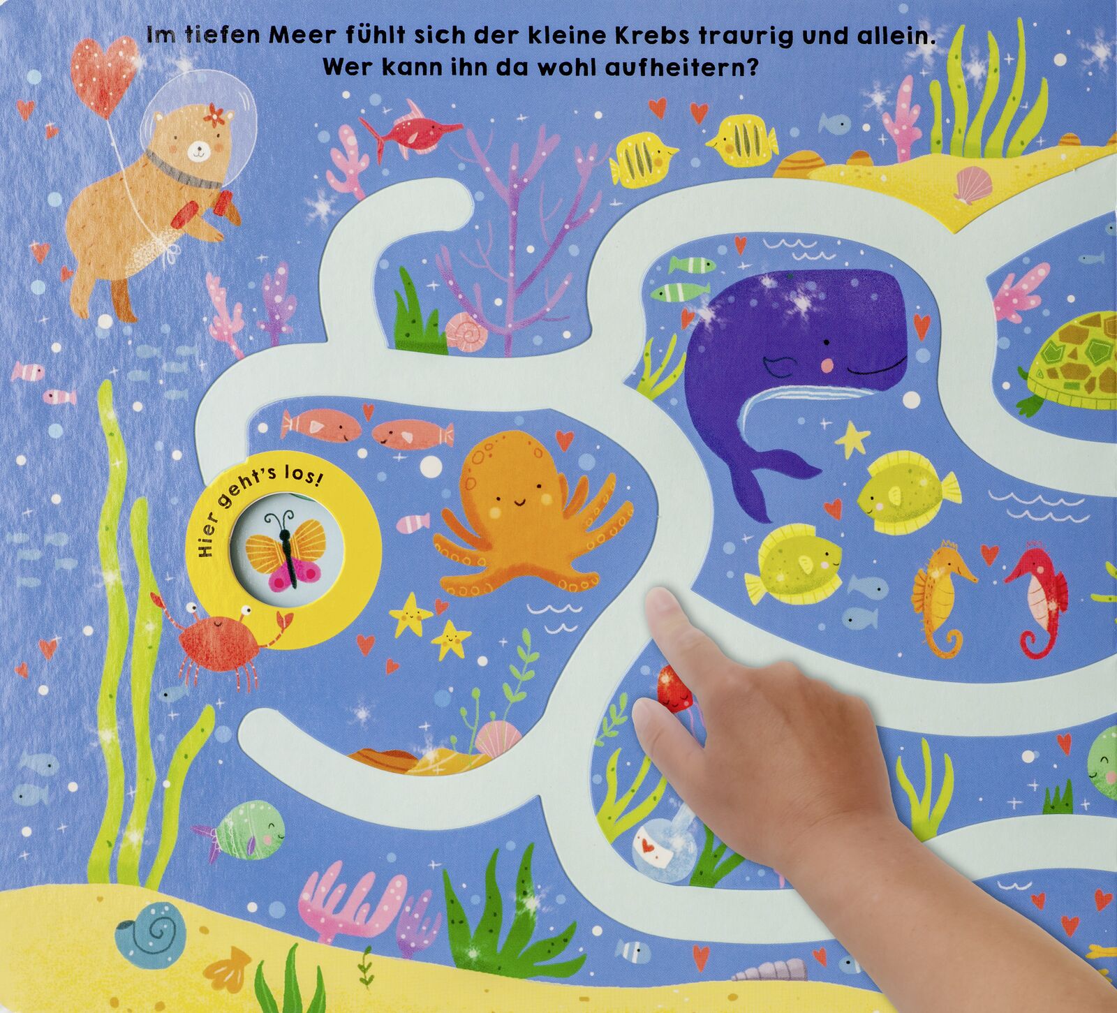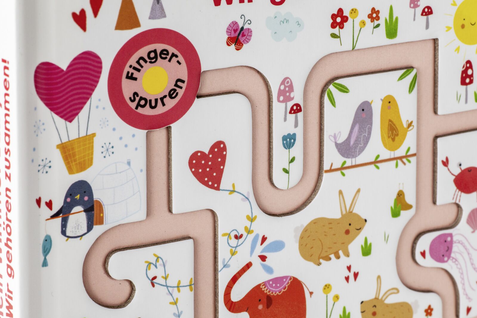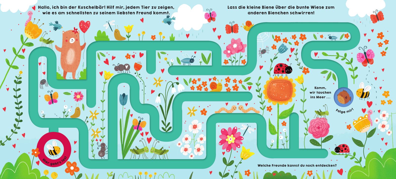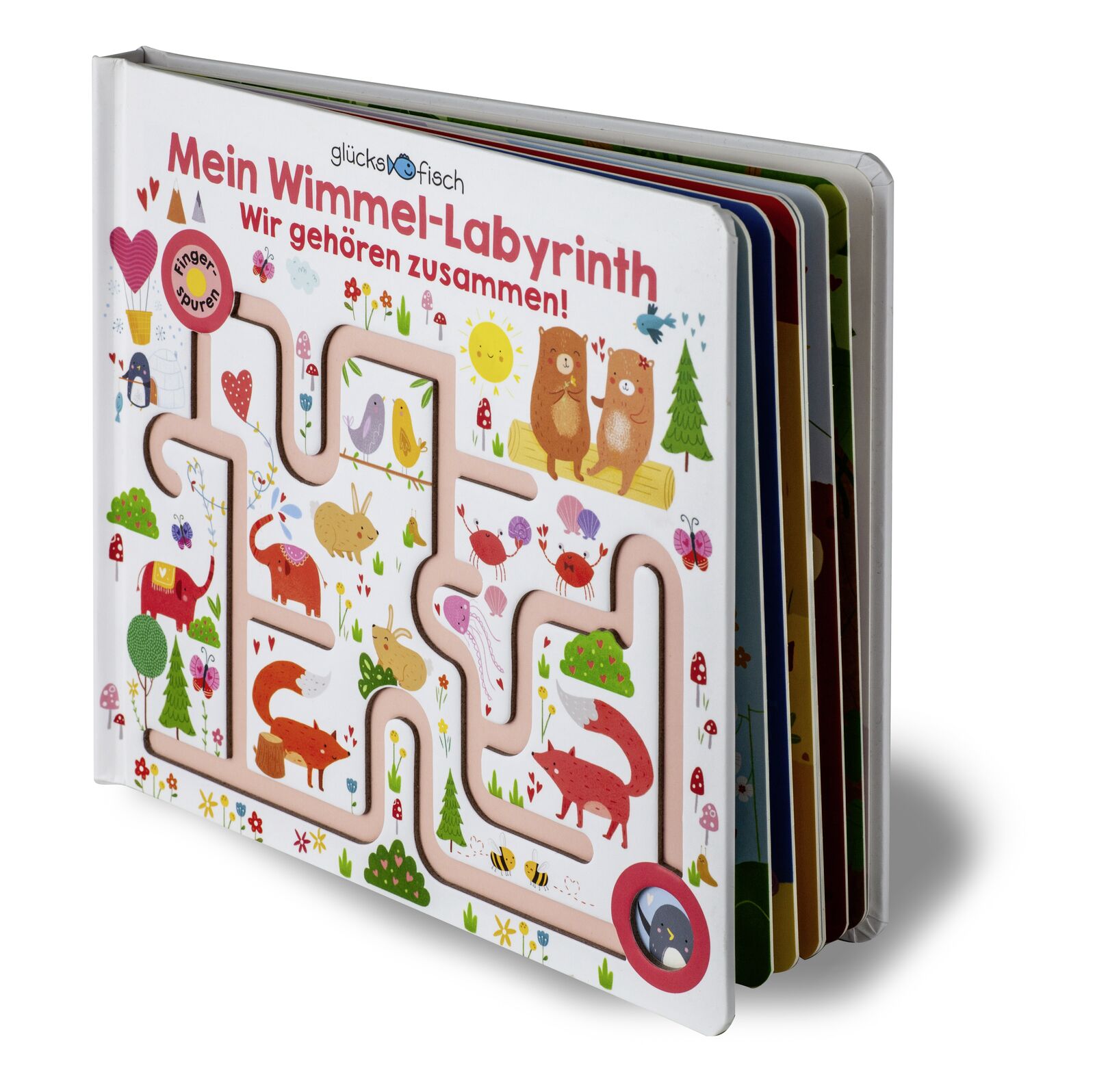 Niedlicher Wimmel-Fingerspuren-Spaß! Der niedliche Kuschelbär verteilt Herzen in der Luft und sorgt dafür, dass Häschen, Bienchen und die kleinen Elefanten durch die wimmeligen Labyrinthe zu ihren liebsten Freunden finden. Und natürlich wird auch der Bär am E...