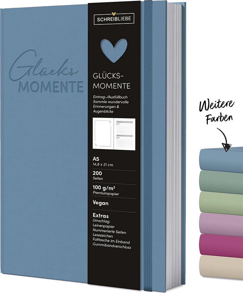 ·Notizbuch DIN A5 (14,8 x 21 cm) · 200 Seiten, punktkariert ·100 g umweltfreundliches FSC Papier ·Nachhaltig mit veganen Materialien produziert ·In edler Leinenstruktur ·1 Lesebändchen, Zetteltasche und Gummiband Sammle die großen und kleinen Augenblicke im L...