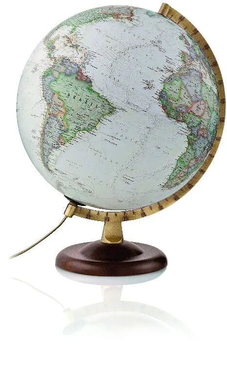 NG Gold Executive, Leuchtglobus mit lizensierter National Geographic- Kartografie, politisch in Antikdesign (hell beigebraun), 30 cm Kugeldurchmesser, altgoldfarbener gegossener Metallmeridian mit Skalierung, Echtholzfuß walnußfarben, goldfarbene Zuleitung mit...