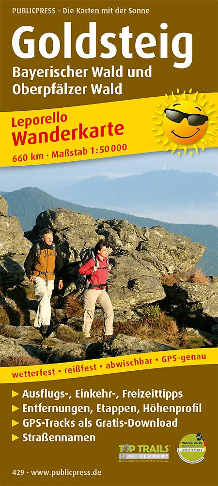 Die Wanderkarte Goldsteig beschreibt den Wanderweg von Marktredwitz nach Passau, der den Spuren einer alten Handelsstraße folgt, auf der weißes Gold (Salz) transportiert wurde. Sie gab dem Wanderweg ihren Namen. Reizvoll an der Streckenführung sind die zwei Va...