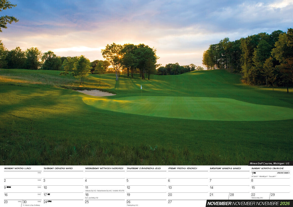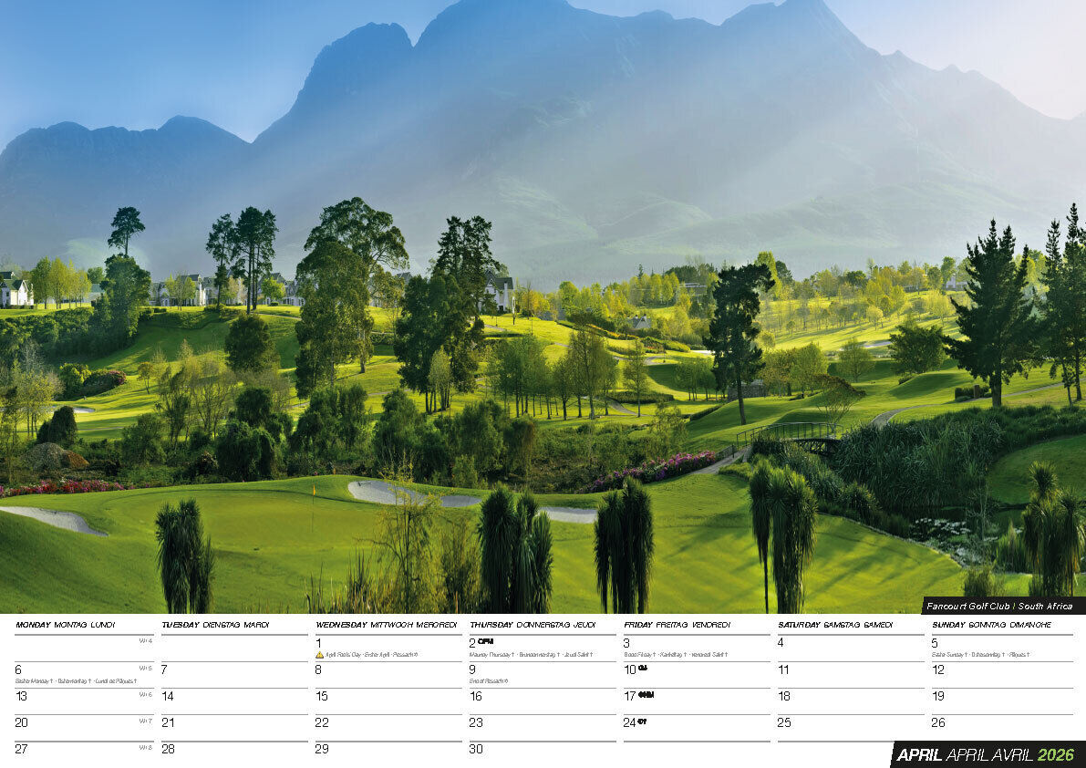 Der ultimative Golf Kalender mit den schönsten Golfkursen der Welt und den größten Stars der PGA Tour. Ein absolutes Muss für jeden Golfspieler und Fan - 365 Tage Faszination Golfsport! Mit allen gesetzlichen und religiösen Feiertagen, Zeitumstellung, Mondphas...