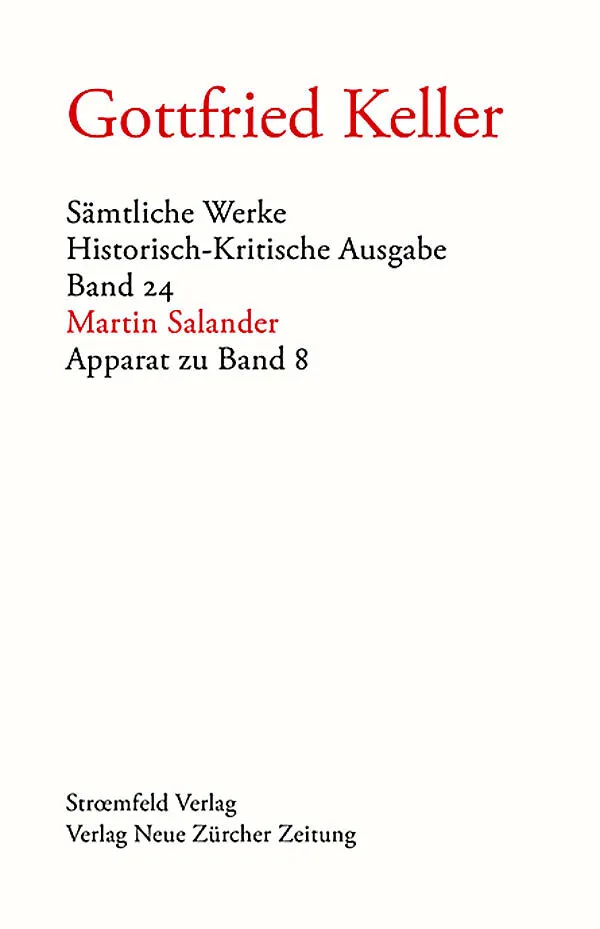 Der Apparat beginnt mit der Entstehungsgeschichte, von der ersten Erwähnung eines einbändigen Romans im Jahre 1881 bis zur Buchausgabe von 1886. Einen wichtigen Schwerpunkt des Bandes bilden die Paralipomena, die zu Martin Salander in ungewöhnlich grosser Zahl...