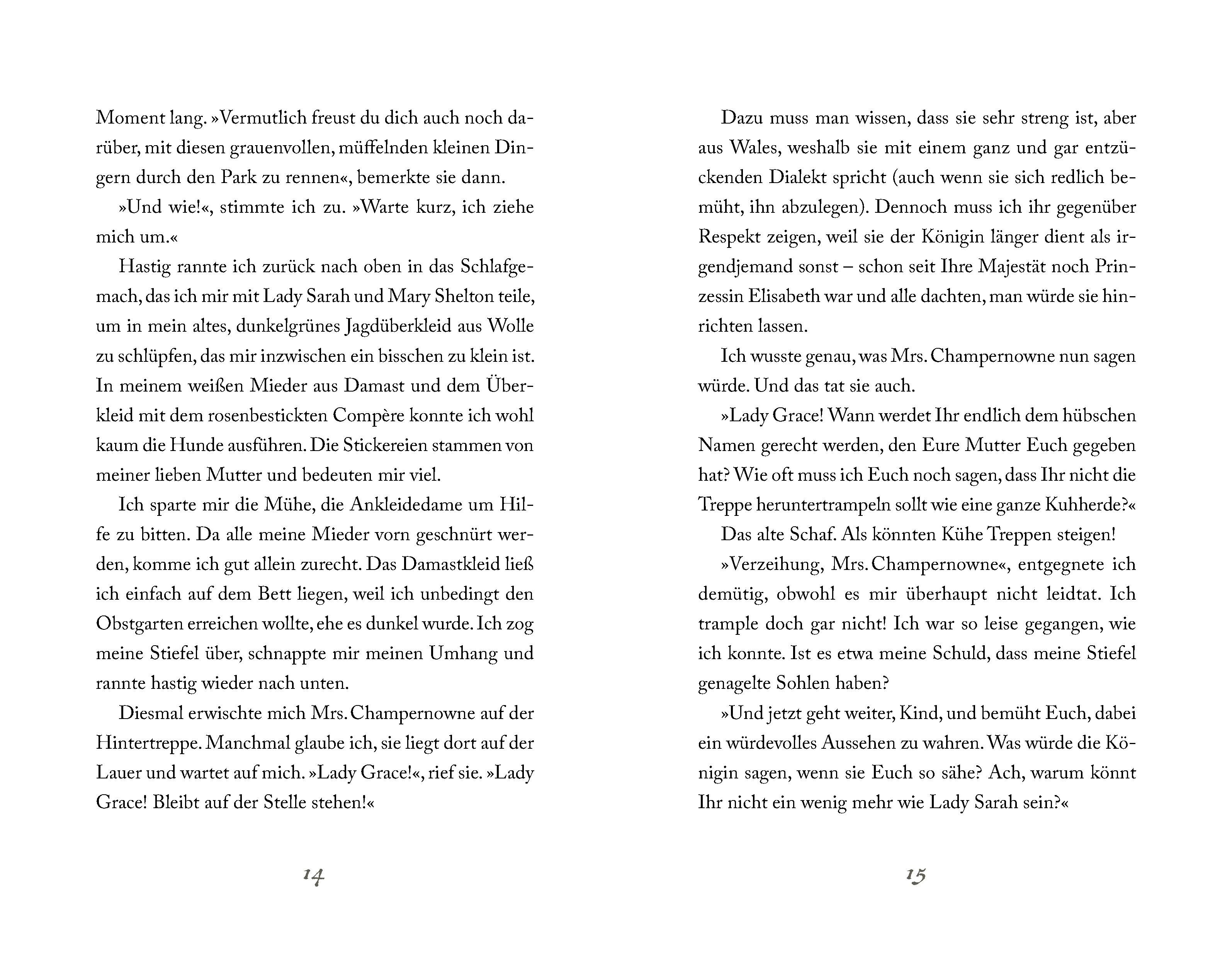 Seit dem Tod ihrer Mutter ist Lady Grace die liebste Hofjungfer von Elisabeth I. Doch nun wünscht die Königin, dass Grace sich verlobt. Die Wahl zwischen ihren Verehrern dem gütigen alten Sir Charles, dem überheblichen Sir Gerald und dem schüchternen Lord Robe...