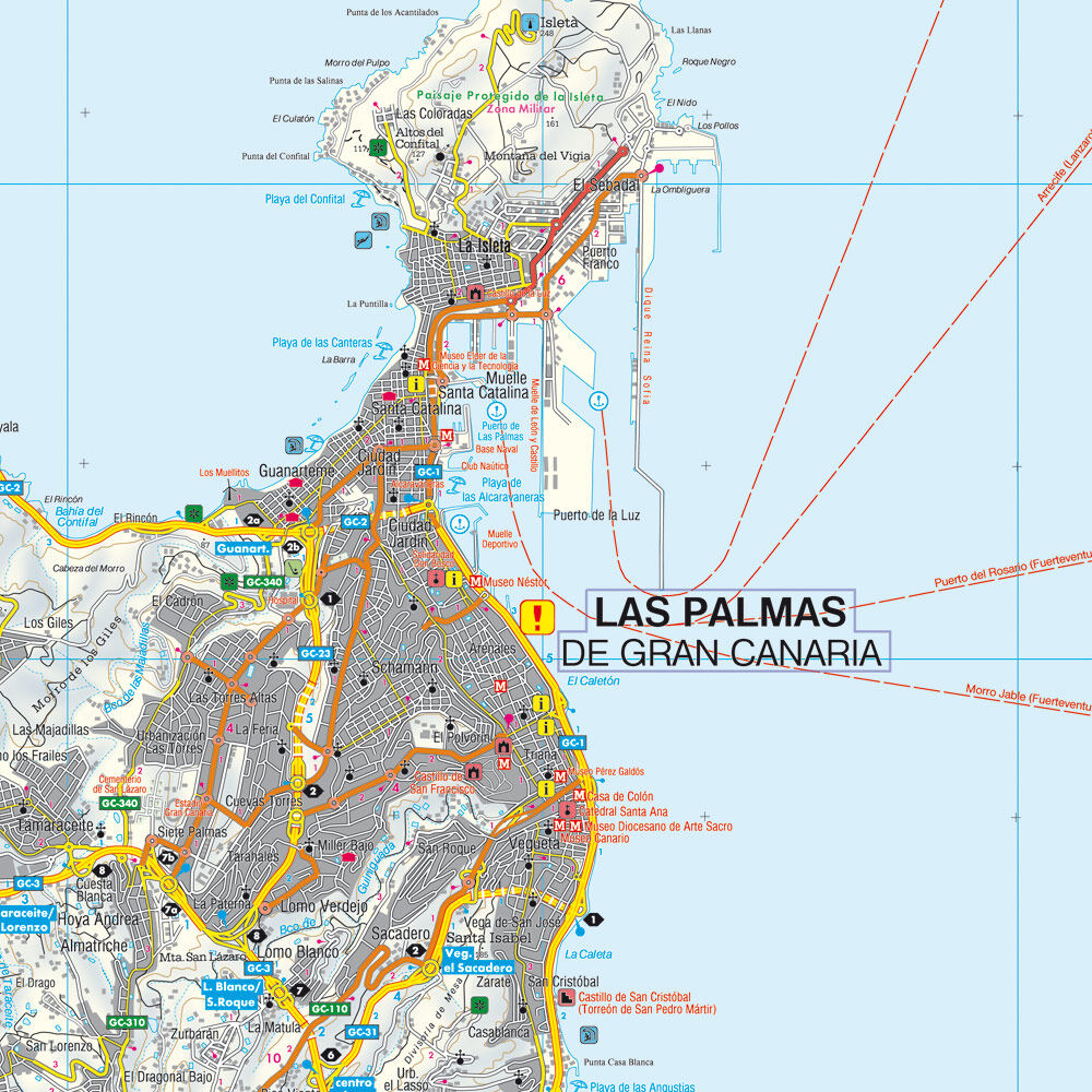 Die Straßen- und Freizeitkarte Gran Canaria im Maßstab 1:50.000 enthält alle wichtigen Informationen für Urlauber die die größte Kanareninsel besuchen möchten. Das weit verzweigte Straßennetz ist exakt abgebildet, landschaftlich schöne Straßen sind farblich he...