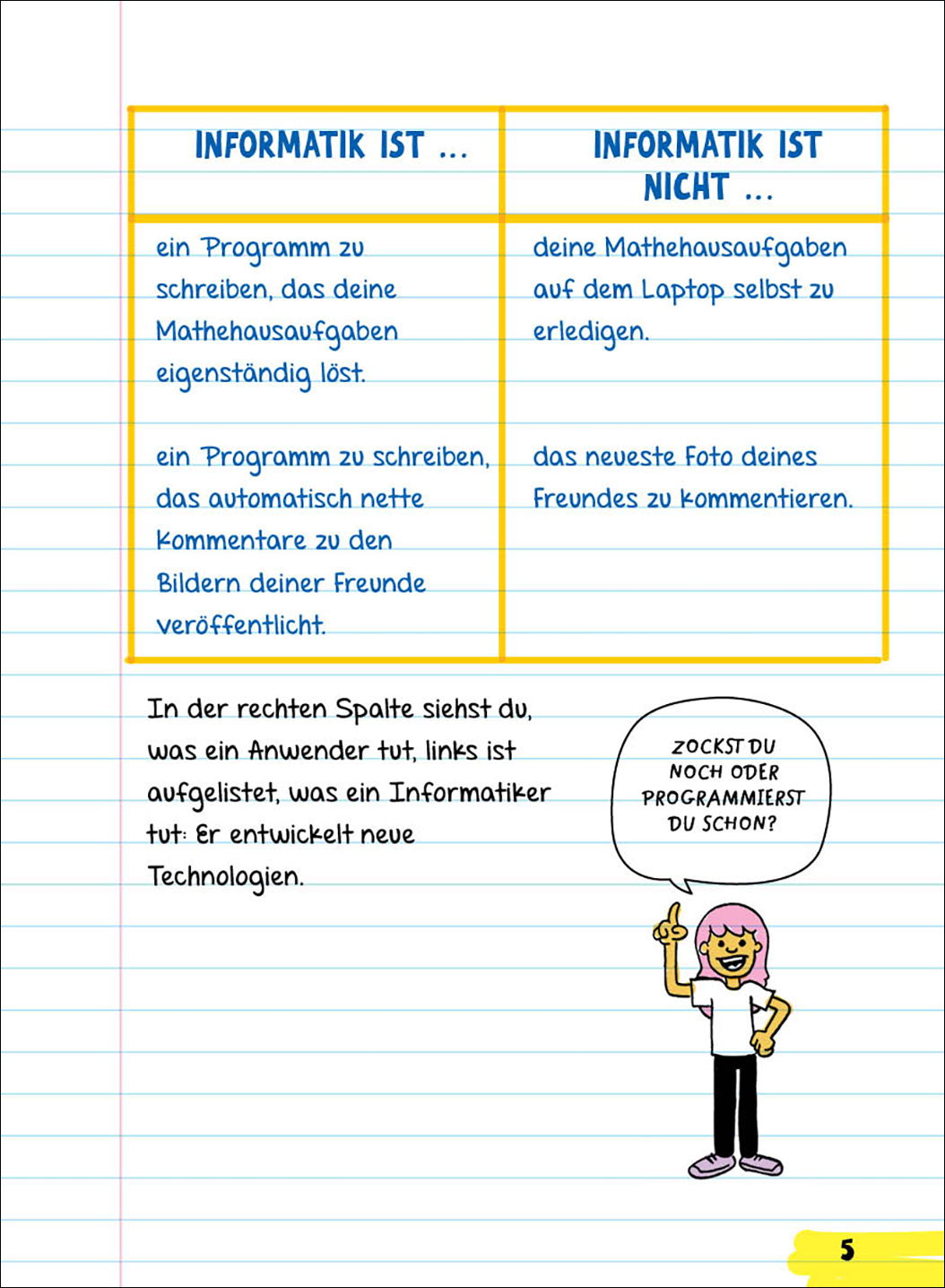 Keine Lust auf Informatik ? Damit ist jetzt Schluss. Hier kommt dein Starter-Kit fürs Programmieren ! Für bessere Noten und den vollen Durchblick! Erfahre alles über ... ... Computersysteme ... Datenanalyse ... Bugs ... Bits und Bytes ... Softwareentwicklung ....