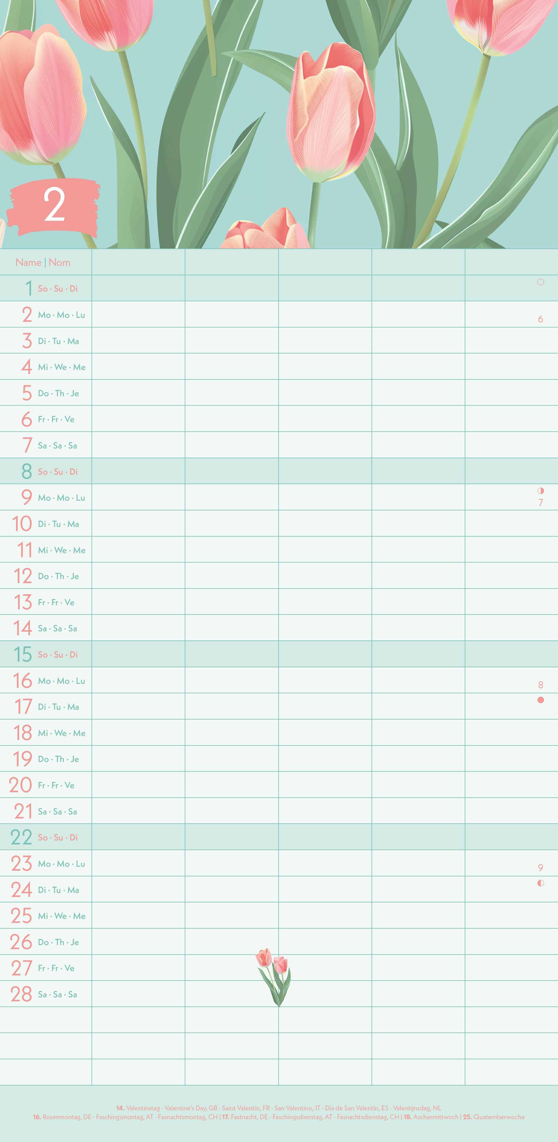 Der GreenLine Floral Familienplaner 2026 vereint Funktionalität und Ästhetik: Zwölf liebevoll gestaltete Pflanzen-Illustrationen in sanften Naturtönen begleiten Sie durchs Jahr, während fünf Spalten reichlich Platz für alle Termine der Familie bieten...