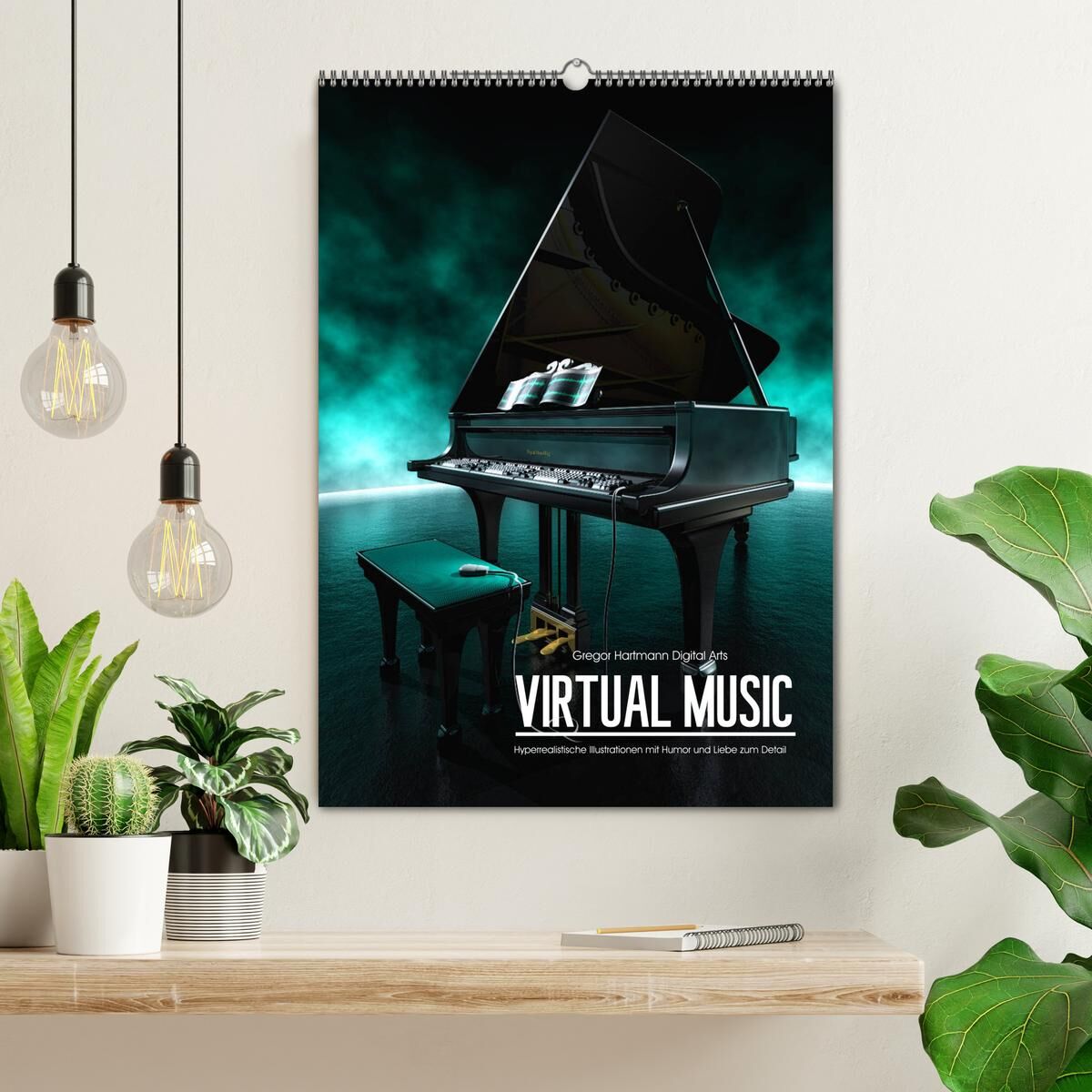 VIRTUAL MUSIC - Musikinstrumente in Hyperrealistischen Illustrationen (Wandkalender 2026 DIN A2 hoch), CALVENDO Monatskalender