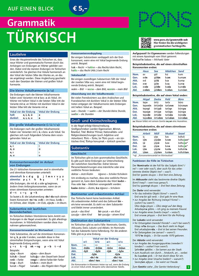 Die ganze türkische Grammatik auf einen Blick: überarbeite Auflage Alle wichtigen grammatischen Themen auf einen Blick zum schnellen Nachschlagen und Lernen. Die Klappkarte enthält alle türkischen Buchstaben. Alle wichtigen grammatischen Fachbegriffe mit Defi...