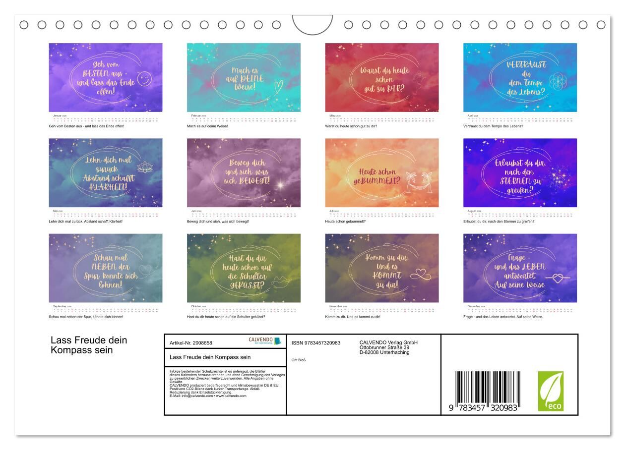 Dieser Kalender ist der perfekte Begleiter durch das Jahr: Mit liebevollen und kraftvollen Fragen und Impulsen nimmt dich die Autorin Grit Bloß mit auf eine freudvolle Seelenreise. Lass dich berühren und inspirieren von Weisheit und Liebe und genieße die Farbe...