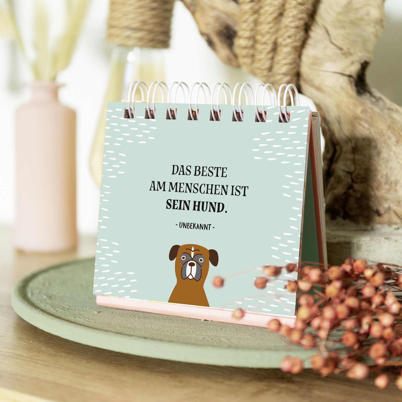Dekorativer Aufsteller mit lustigen Sprüchen für Hunde-Fans Der kleine Spiralaufsteller bietet jede Menge herzerwärmende Anregungen für mehr Humor im Alltag von Mensch und Hund: Richtig ausgebildet kann ein Mensch der beste Freund eines Hundes sein. (Corey Fo...