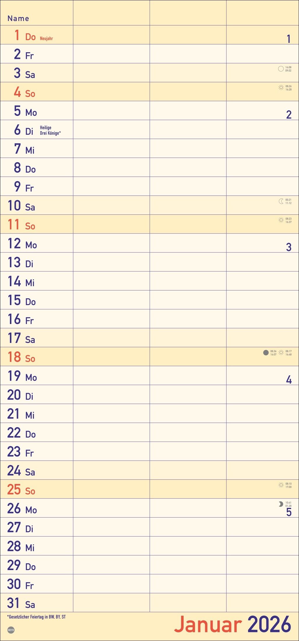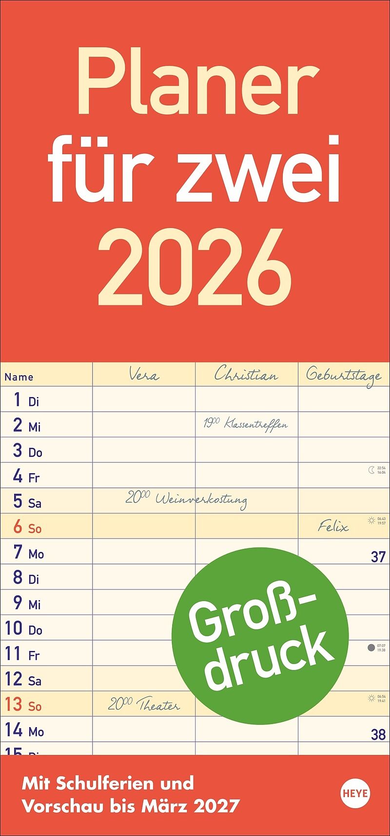 Praktische Organisationshilfe für den Alltag: Partnerkalender 2026 mit Extra-Spalte für Geburtstage - Alle Termine im Blick: länglicher Monatskalender groß gedruckt und mit breiten Spalten für eine gute Lesbarkeit - Für alle, die richtig was vorhaben: Paarka...