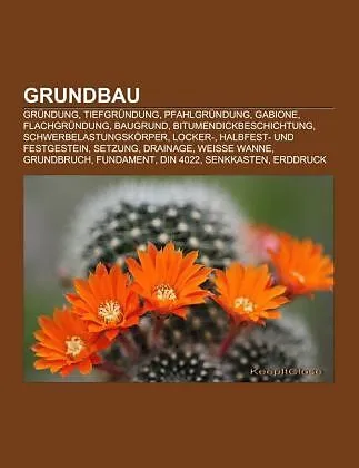 Quelle: Wikipedia. Seiten: 35. Kapitel: Gründung, Tiefgründung, Pfahlgründung, Gabione, Flachgründung, Baugrund, Bitumendickbeschichtung, Schwerbelastungskörper, Locker-, Halbfest- und Festgestein, Setzung, Drainage, Weiße Wanne, Grundbruch, Fundament, DIN 402...