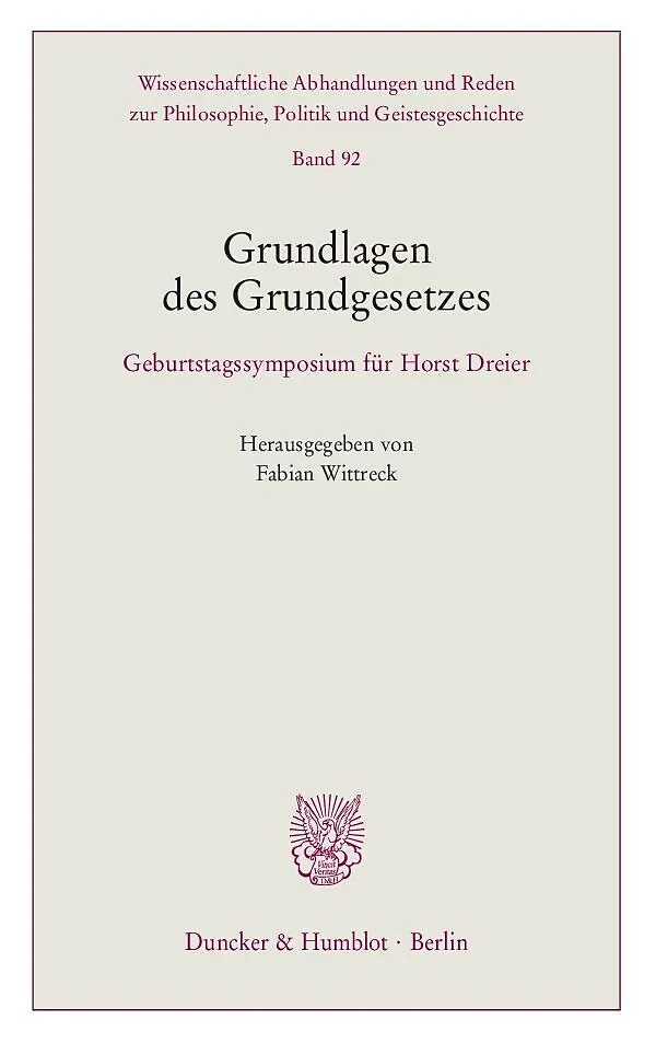 Horst Dreier steht wie kaum ein anderer für eine grundlagenorientierte Interpretation des Grundgesetzes. Aus Anlass seines Geburtstages fragen daher seine Schülerinnen und Schüler in ihren Beiträgen nach ebendiesen Grundlagen der deutschen Verfassungsurkunde. ...