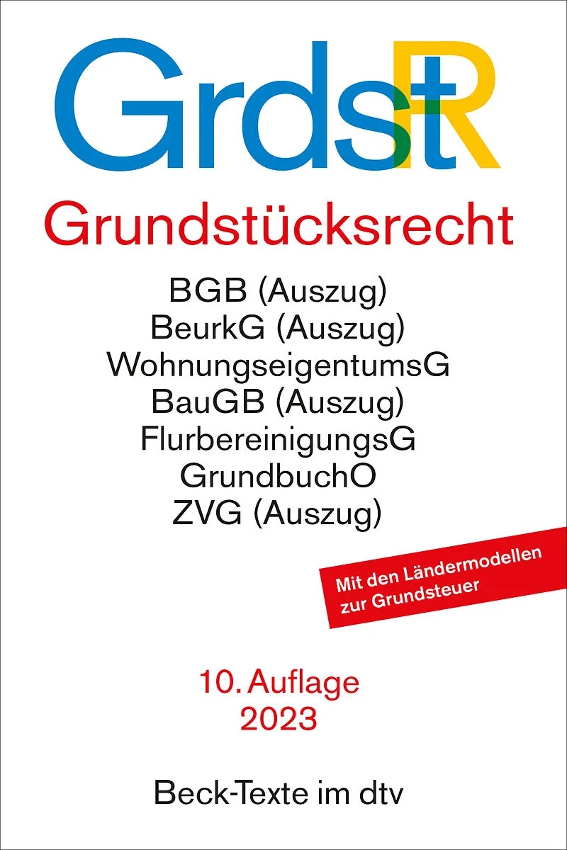 mit u.a. Bürgerlichem Gesetzbuch (Auszug), Wohnungseigentumsgesetz, Beurkundungsgesetz (Auszug), Flurbereinigungsgesetz, Grundstückverkehrsgesetz, Grundstücksverkehrsordnung, Grundbuchordnung, Zwangsversteigerungsgesetz (Auszug), Grunderwerbsteuergesetz und G...