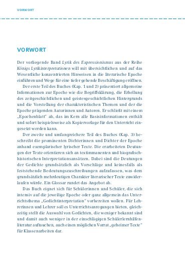 Der Band Lyrik des Expressionismus aus der Reihe Königs Erläuterungen Spezial ist eine verlässliche und bewährte Interpretationshilfe für Schüler und weiterführende Informationsquelle für Lehrkräfte und andere Interessierte: verständlich, übersichtlich und pr...