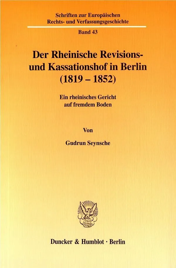 In Berlin wurde am 15. Juli 1819 der Rheinische Revisions- und Kassationshof als oberster Gerichtshof für die preußischen Rheinprovinzen eröffnet. Seine Juristen haben vor altpreußischem Publikum in öffentlichen Sitzungen das französische Recht angewandt, das ...