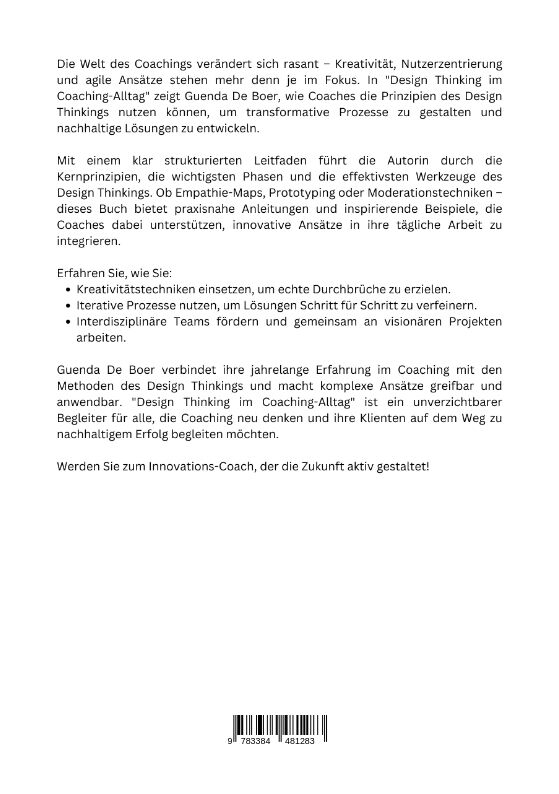 Die Welt des Coachings verändert sich rasant Kreativität, Nutzerzentrierung und agile Ansätze stehen mehr denn je im Fokus. In "Design Thinking im Coaching-Alltag" zeigt Guenda De Boer, wie Coaches die Prinzipien des Design Thinkings nutzen können, um transfor...