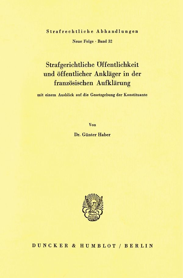 Strafgerichtliche Öffentlichkeit und öffentlicher Ankläger in der französischen Aufklärung, mit einem Ausblick auf die Gesetzgebung der Konstituante.
