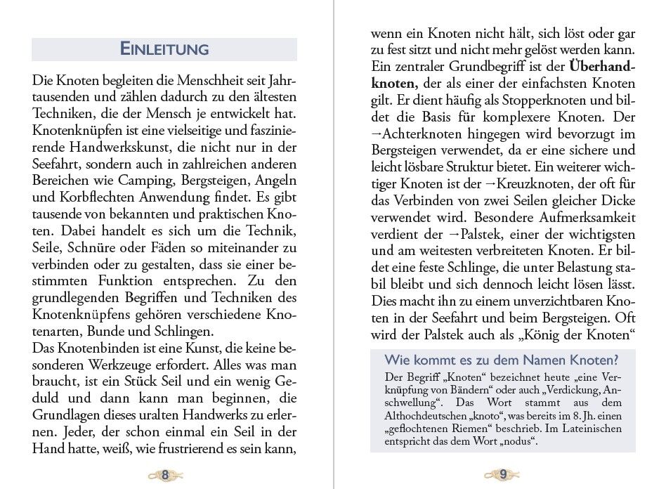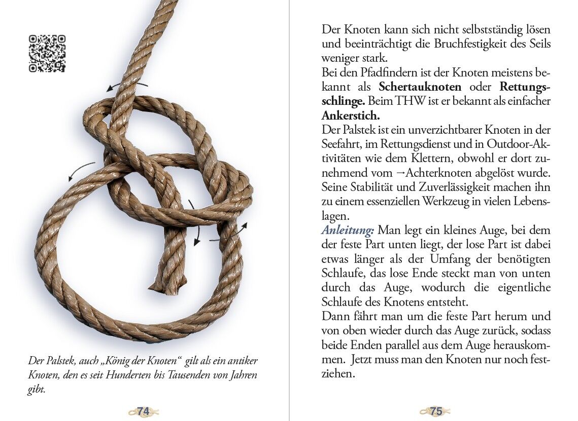 Seit Jahrtausenden begleiten Knoten die Menschheit und gehören zu den ältesten vom Menschen entwickelten Techniken. Das Knotenknüpfen ist eine vielseitige Handwerkskunst, die in Seefahrt, Bergsteigen, Camping oder Angeln Anwendung findet. Sie beruht auf der Ku...
