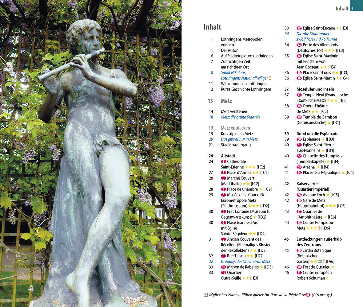 Von der Romanik bis zum Art nouveau Lothringens Städte verbinden Kunst und Architektur vergangener Epochen mit moderner Stadtplanung. So kann in Nancy mit dem Place Stanislas einer der schönsten Plätze Europas und Weltkulturerbe bewundert werden. Metz begeiste...