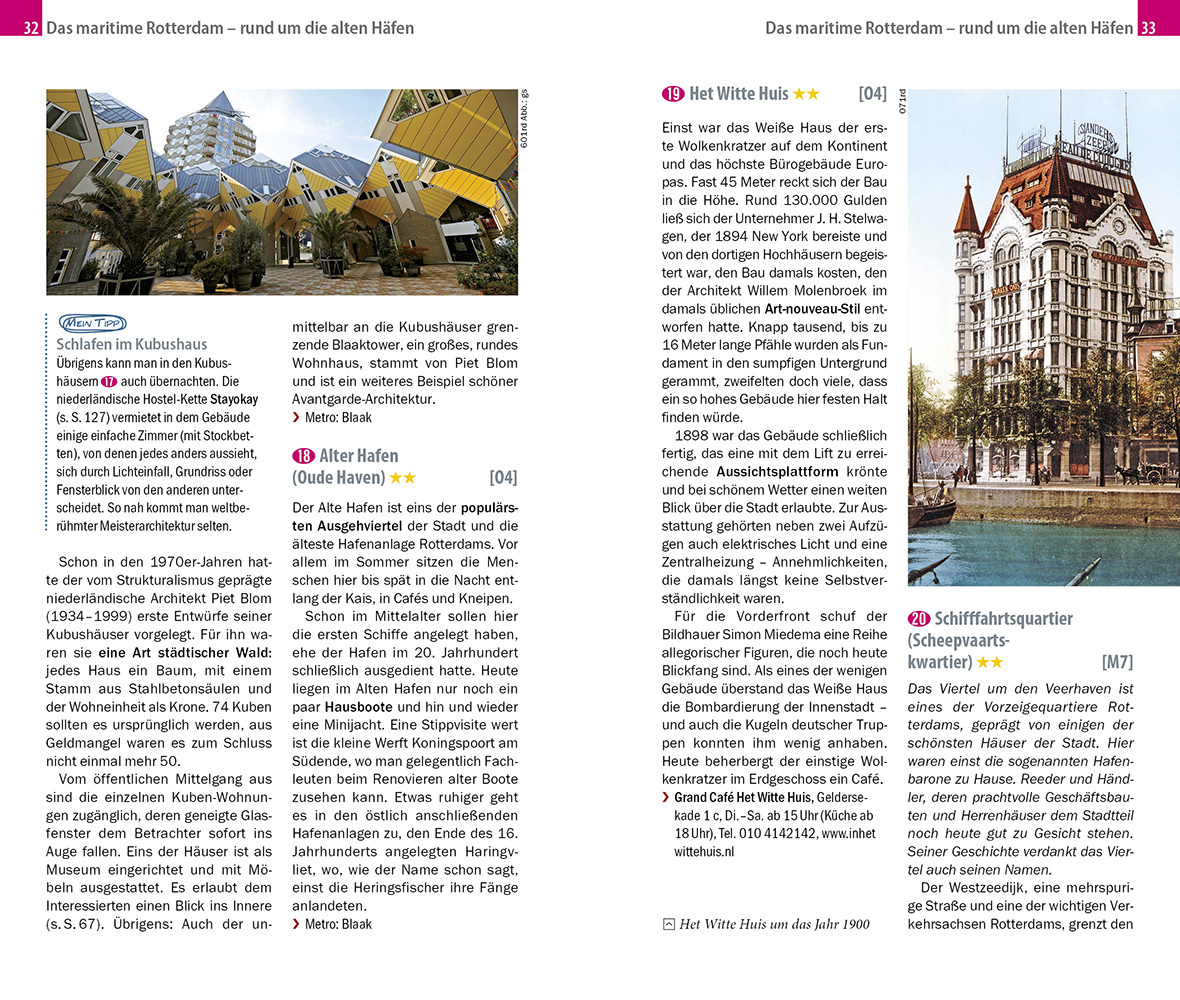 Rotterdam war schon im Mittelalter ein bedeutender Handelsplatz und bis in die Gegenwart bestimmt der Hafen, einer der größten Europas, den Rhythmus der Stadt. Architektur-Highlights verschiedener Epochen, vom Witte Huis bis zu den Kubushäusern, dokumentieren...