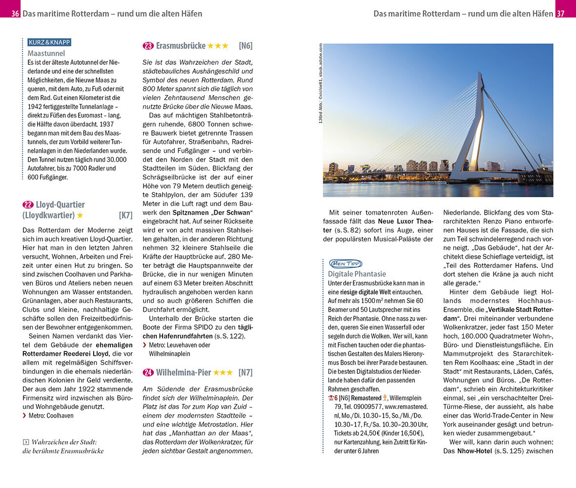 Rotterdam war schon im Mittelalter ein bedeutender Handelsplatz und bis in die Gegenwart bestimmt der Hafen, einer der größten Europas, den Rhythmus der Stadt. Architektur-Highlights verschiedener Epochen, vom Witte Huis bis zu den Kubushäusern, dokumentieren ...