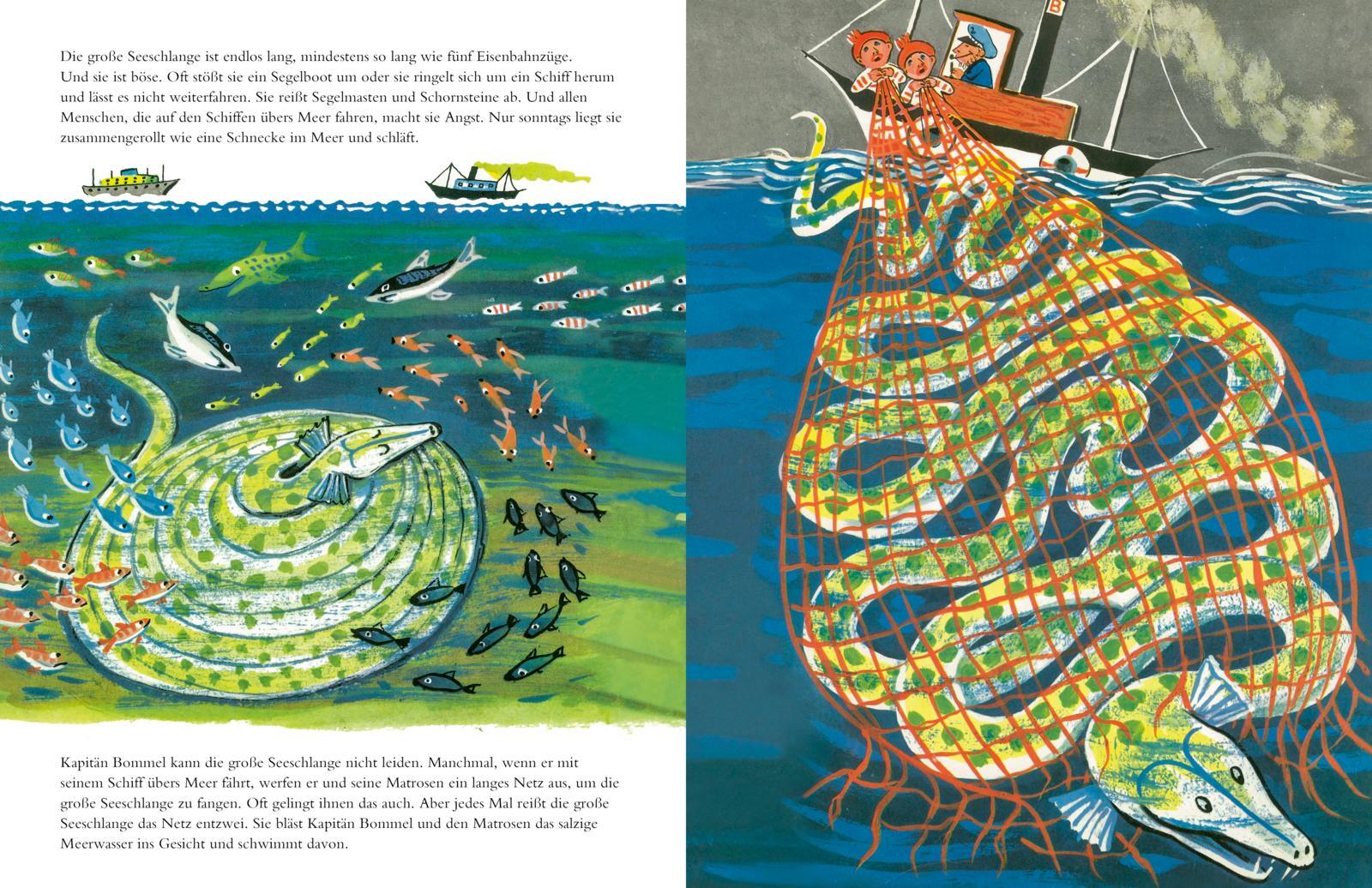 Der Bilderbuchklassiker aus den 60er-Jahren ist wieder da! Kapitän Bommel hat schon vieles gesehen, aber eine Seeschlange mindestens so lang wie fünf Eisenbahnzüge" ist ihm bislang noch nicht ins Netz gegangen. Von Anfang an kann Kapitän Bommel die Seeschlang...