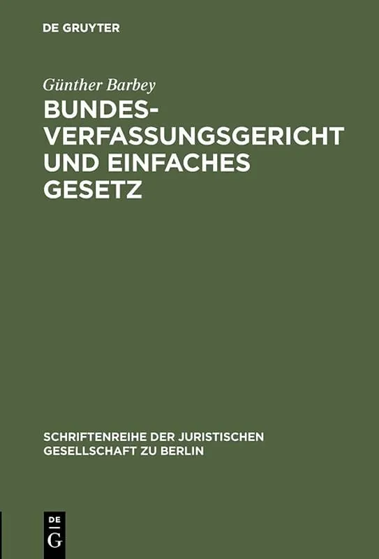 Keine ausführliche Beschreibung für "Bundesverfassungsgericht und einfaches Gesetz" verfügbar. Klappentext Gegründet im Jahr 1859, zählt die Juristische Gesellschaft zu Berlin zu den ältesten ihrer Art in Europa und blickt auf eine lange Tradition zu...