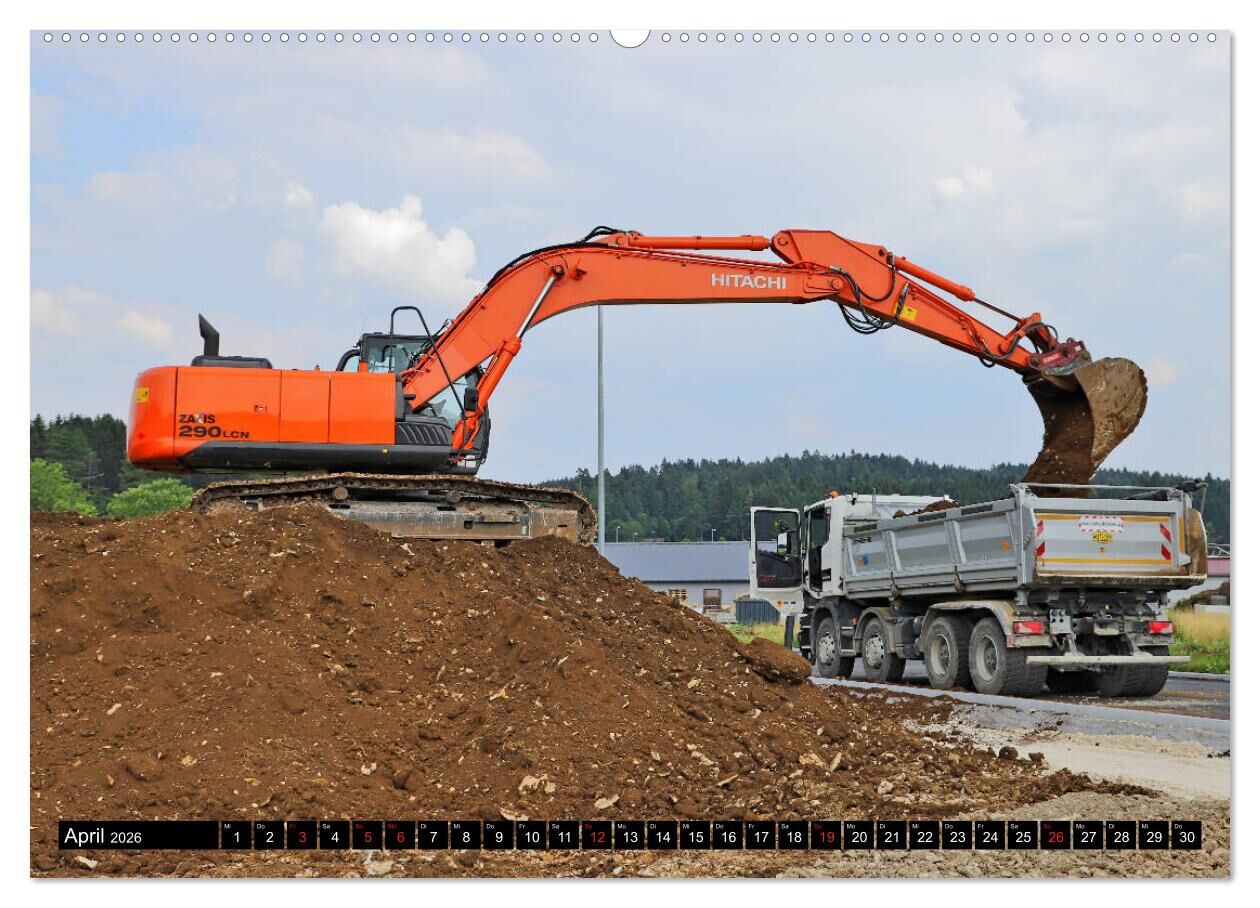 Baufahrzeuge auf der Baustelle (hochwertiger Premium Wandkalender 2026 DIN A2 quer), Kunstdruck in Hochglanz