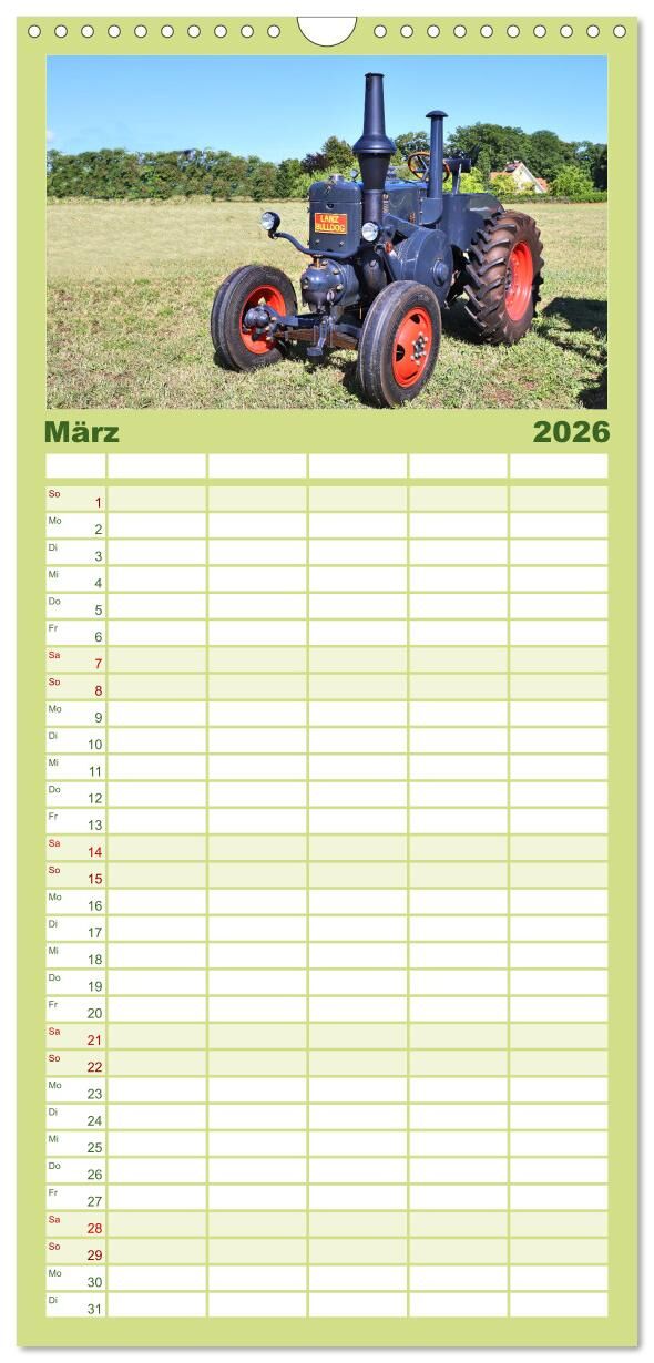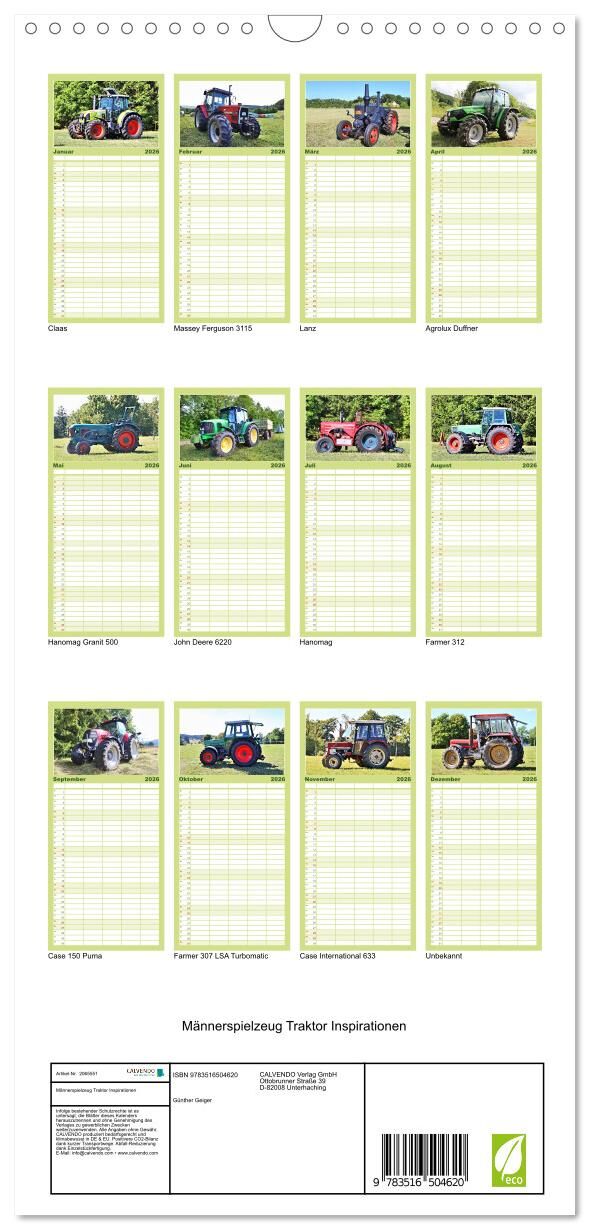 Familienplaner 2026 - Männerspielzeug Traktor Inspirationen mit 5 Spalten (Wandkalender, 21 x 45 cm) CALVENDO