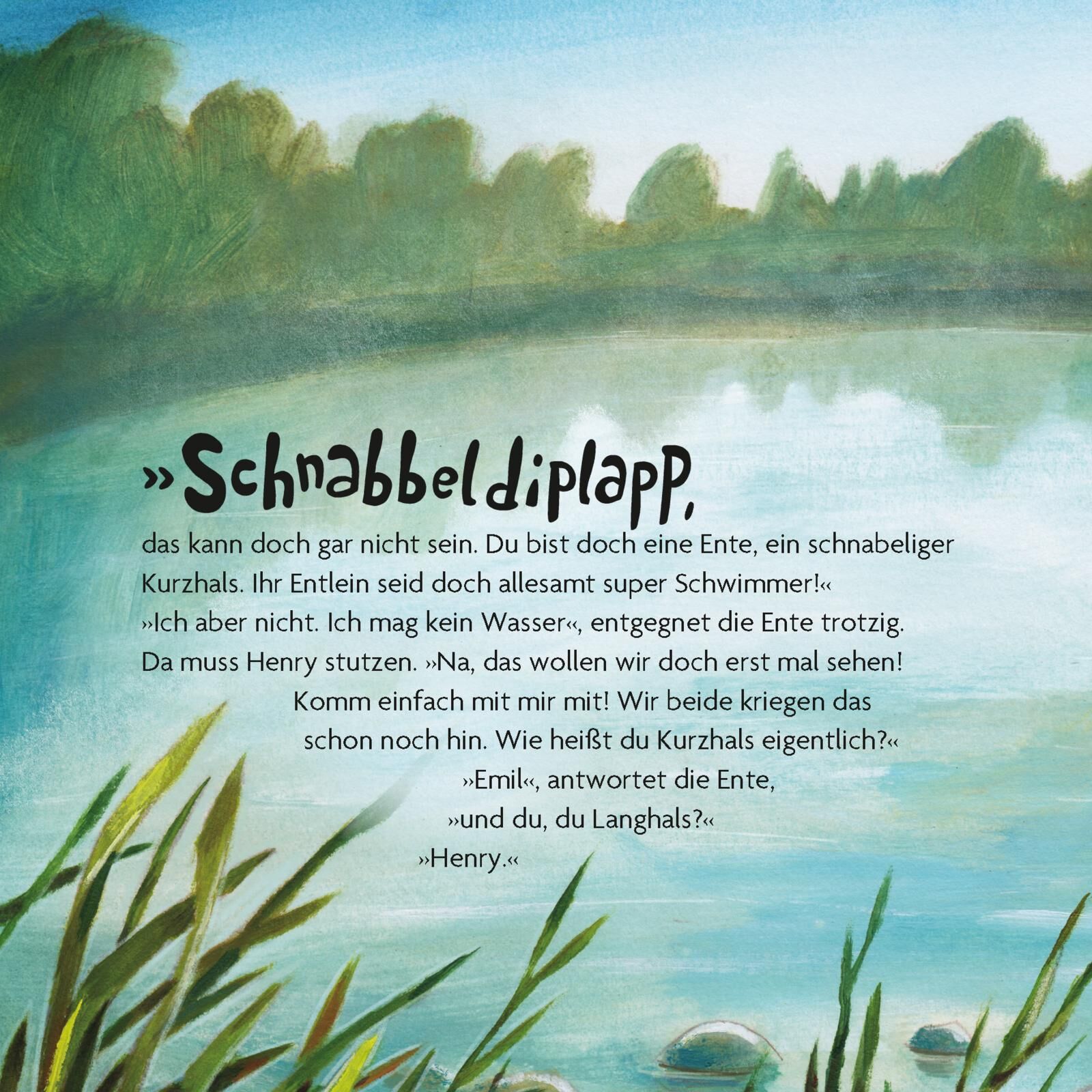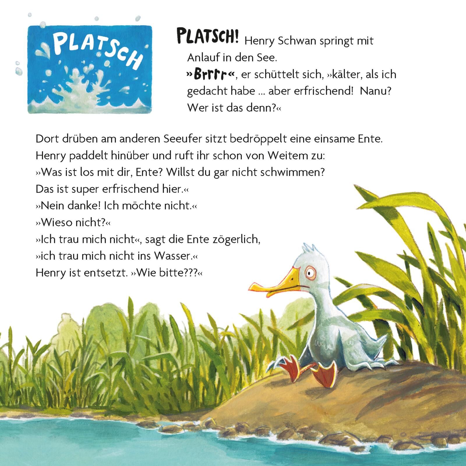 Emil traut sich nicht ins Wasser! Was, das gibt's doch gar nicht! Eine wasserscheue Ente? Emil hat Angst. Henry tröstet ihn und zeigt ihm Schritt für Schritt, wie einfach Schwimmen ist. Und tatsächlich Emil kann schwimmen, und zwar ganz alleine. Eine Geschich...