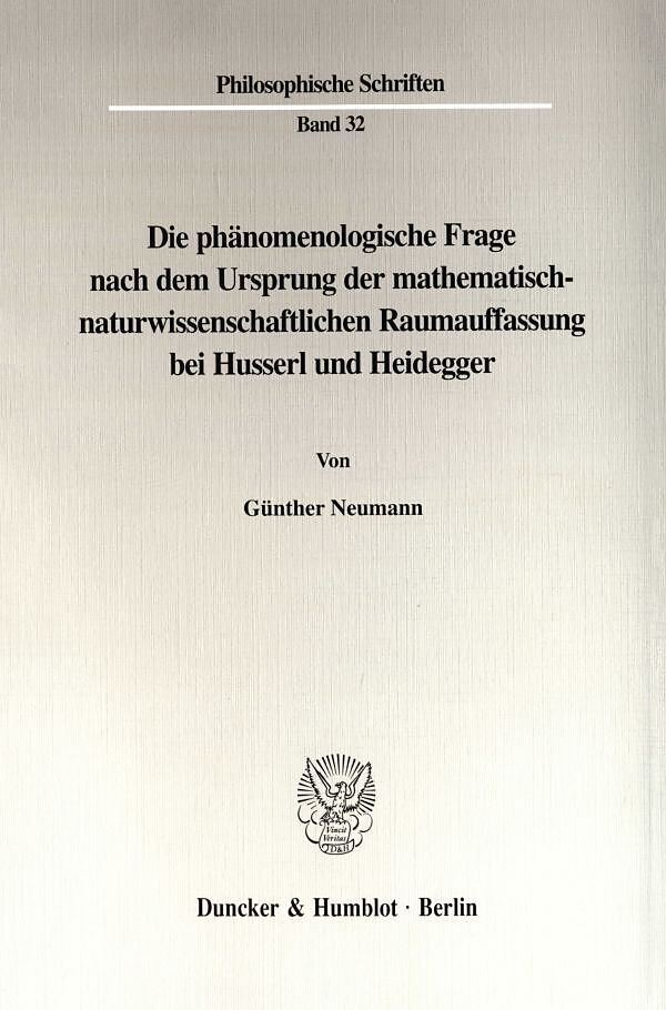 Für den heutigen Menschen ist die Auffassung vom Raum in entscheidender Weise durch einen Raumbegriff bestimmt, wie ihn vor allem die neuzeitliche mathematische Naturwissenschaft (seit Galilei) geprägt hat. Aufgabe dieser phänomenologisch ausgerichteten Unters...