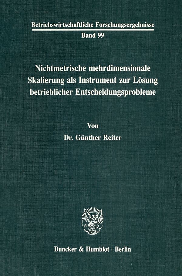 Nichtmetrische mehrdimensionale Skalierung als Instrument zur Lösung betrieblicher Entscheidungsprobleme.