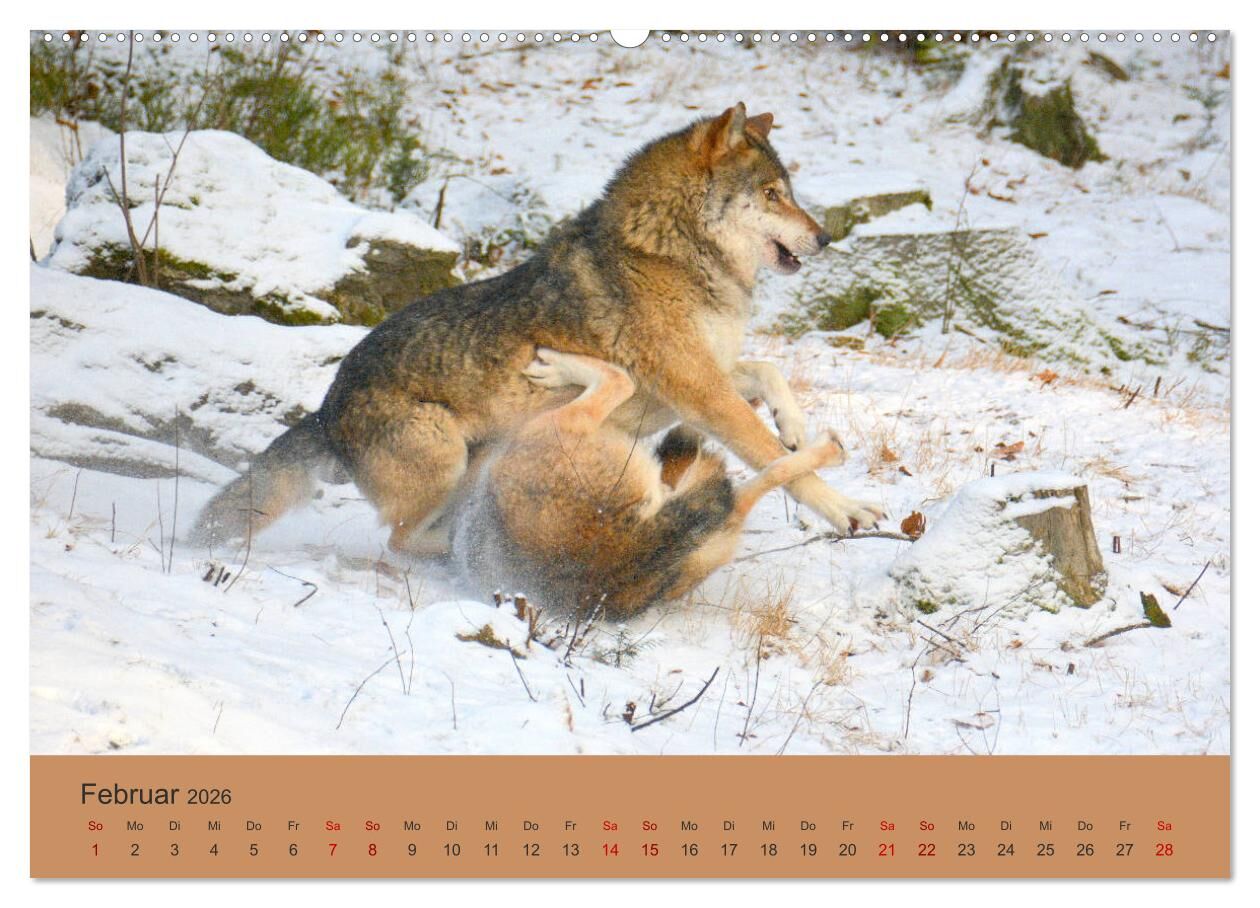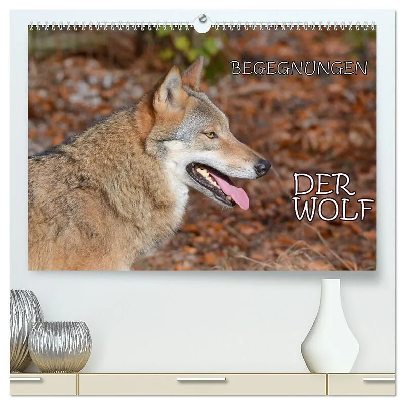 Begegnungen DER WOLF (hochwertiger Premium Wandkalender 2026 DIN A2 quer), Kunstdruck in Hochglanz