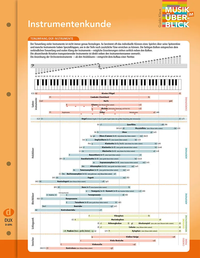• Tonumfang der wichtigsten Instrumente zum Arrangieren und Komponieren • Alle Instrumente im Überblick • Geschichtstafel der Instrumente • Obertonreihe/Transponierende Instrumente • Entwicklung des Orchesters Die neue Reihe Musik im Ü...