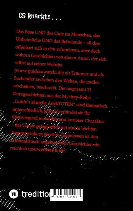 Das Böse UND das Gute im Menschen, das Unheimliche UND das Befreiende all dies offenbart sich in den Geschichten eines Autors, der sich selbst auf seiner Website (www.guidosawatzki.de) als Träumer und als Suchender zwischen endlosen Welten beschreibt. Die insg...