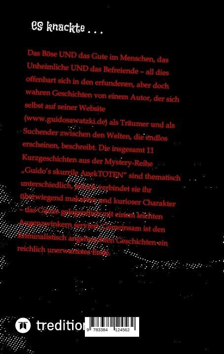 Das Böse UND das Gute im Menschen, das Unheimliche UND das Befreiende all dies offenbart sich in den Geschichten eines Autors, der sich selbst auf seiner Website (www.guidosawatzki.de) als Träumer und als Suchender zwischen endlosen Welten beschreibt. Die insg...