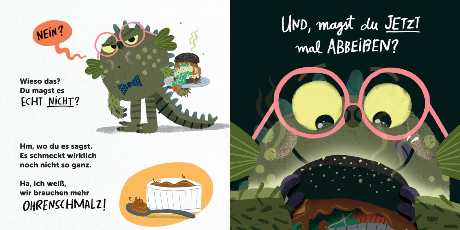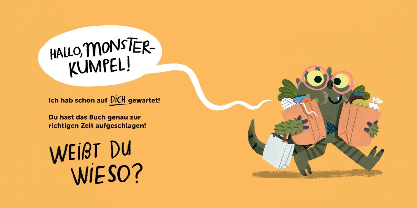 Ein besonderer interaktiver Vorlesespaß für Kinder ab 4 Jahren. Unser Monster hat eine besondere Überraschung für seinen Kumpel: ein selbstgemachtes Monster-Sandwich , belegt mit Leckereien wie Stinkesocken , Ohrenschmalz und Knusperpopel . Doch sein Gast mag...