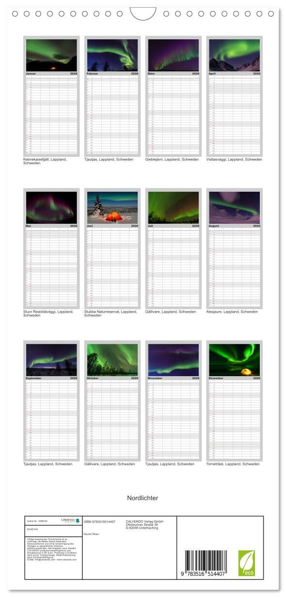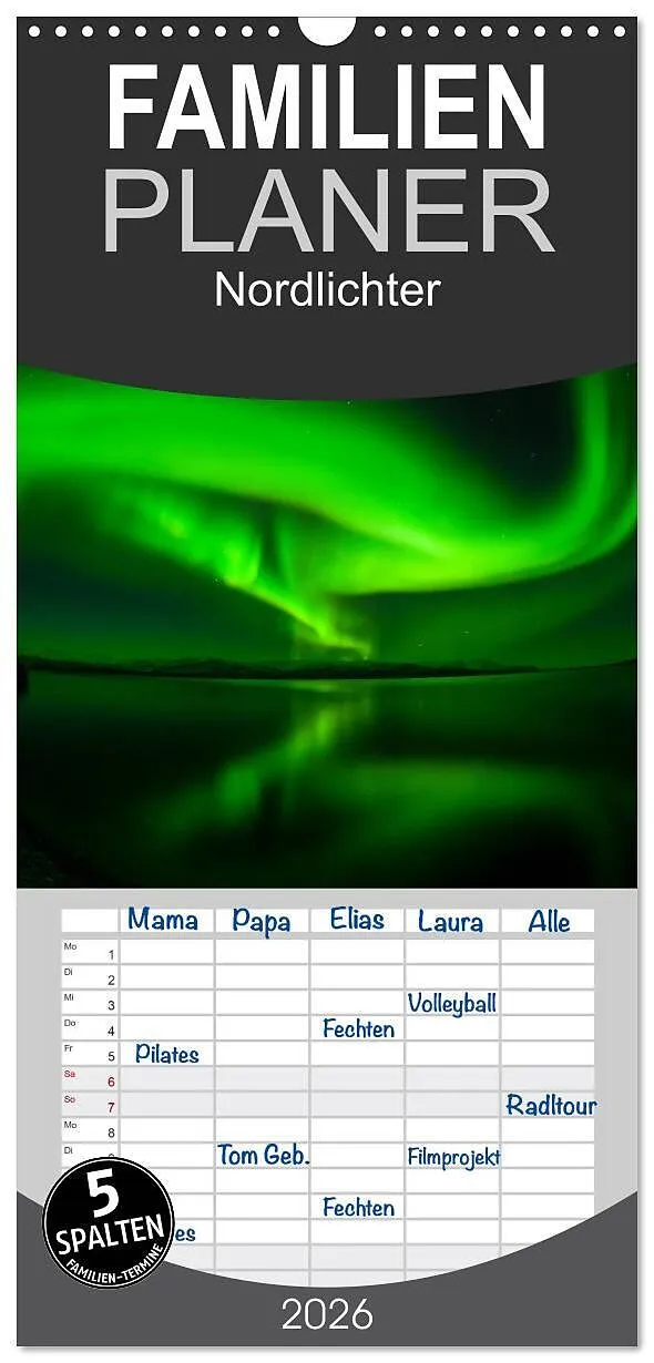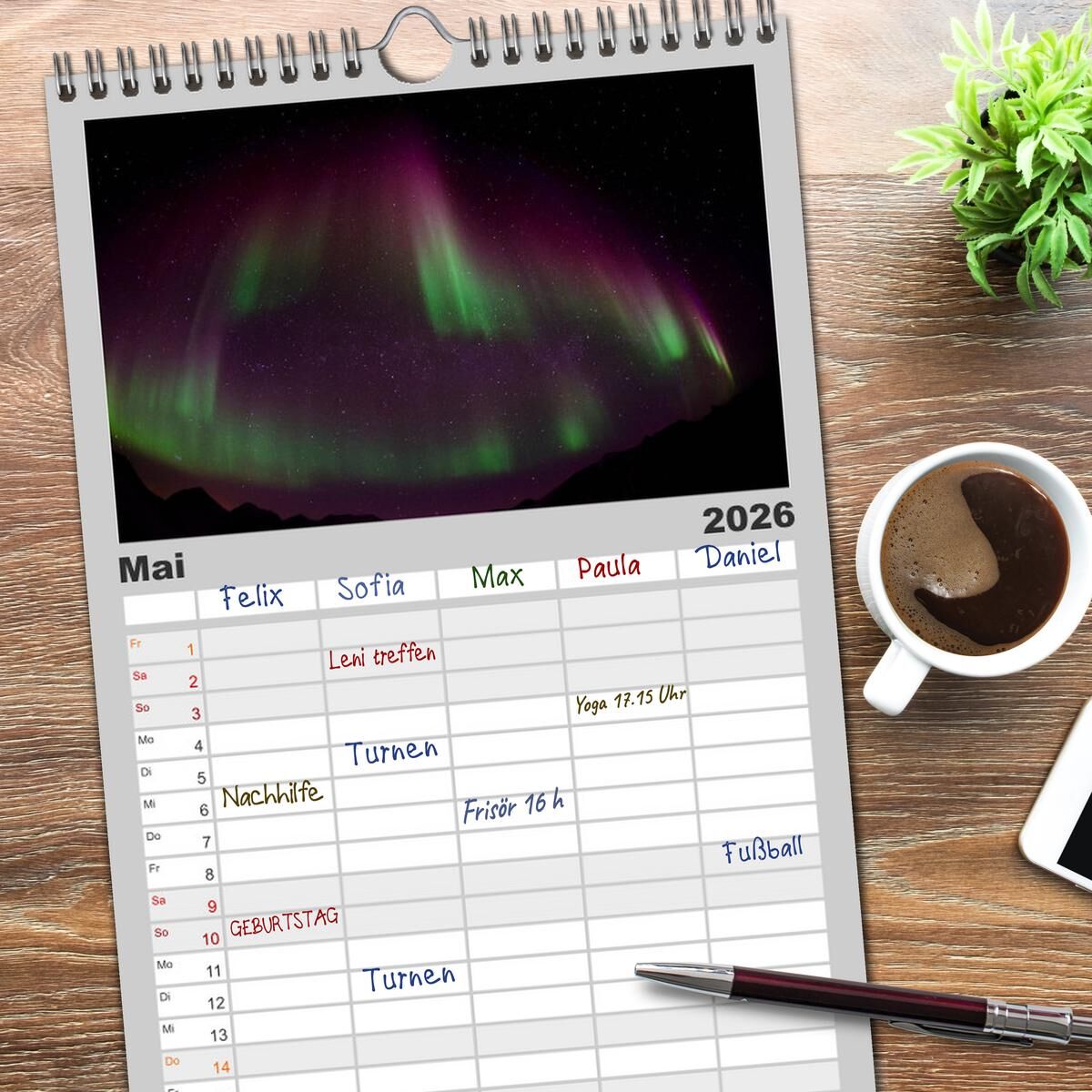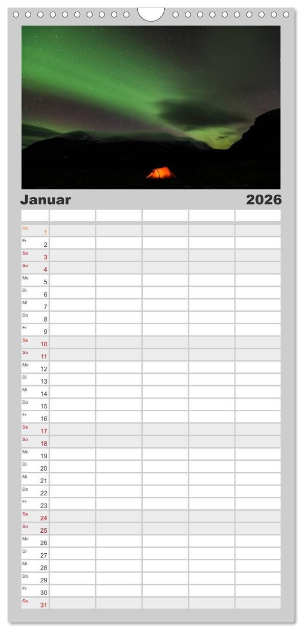 Familienplaner 2026 - Nordlichter mit 5 Spalten (Wandkalender, 21 x 45 cm) CALVENDO