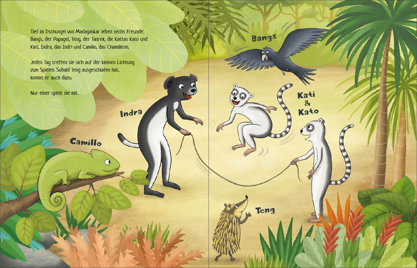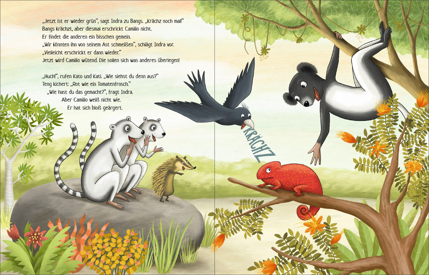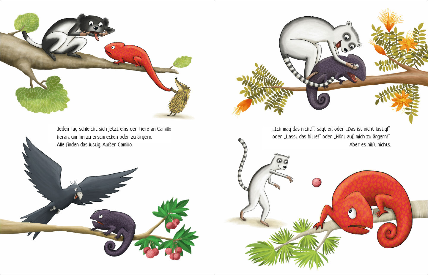 Die Tiere im Dschungel von Madagaskar haben viel Spaß beim Spielen. Eines Tages entdecken sie etwas Neues: Wenn Camillo Chamäleon erschrickt, ändern sich seine Farben! Wenn er sich ärgert auch! Wie lustig! Fortan können die Freunde gar nicht genug davon bekomm...