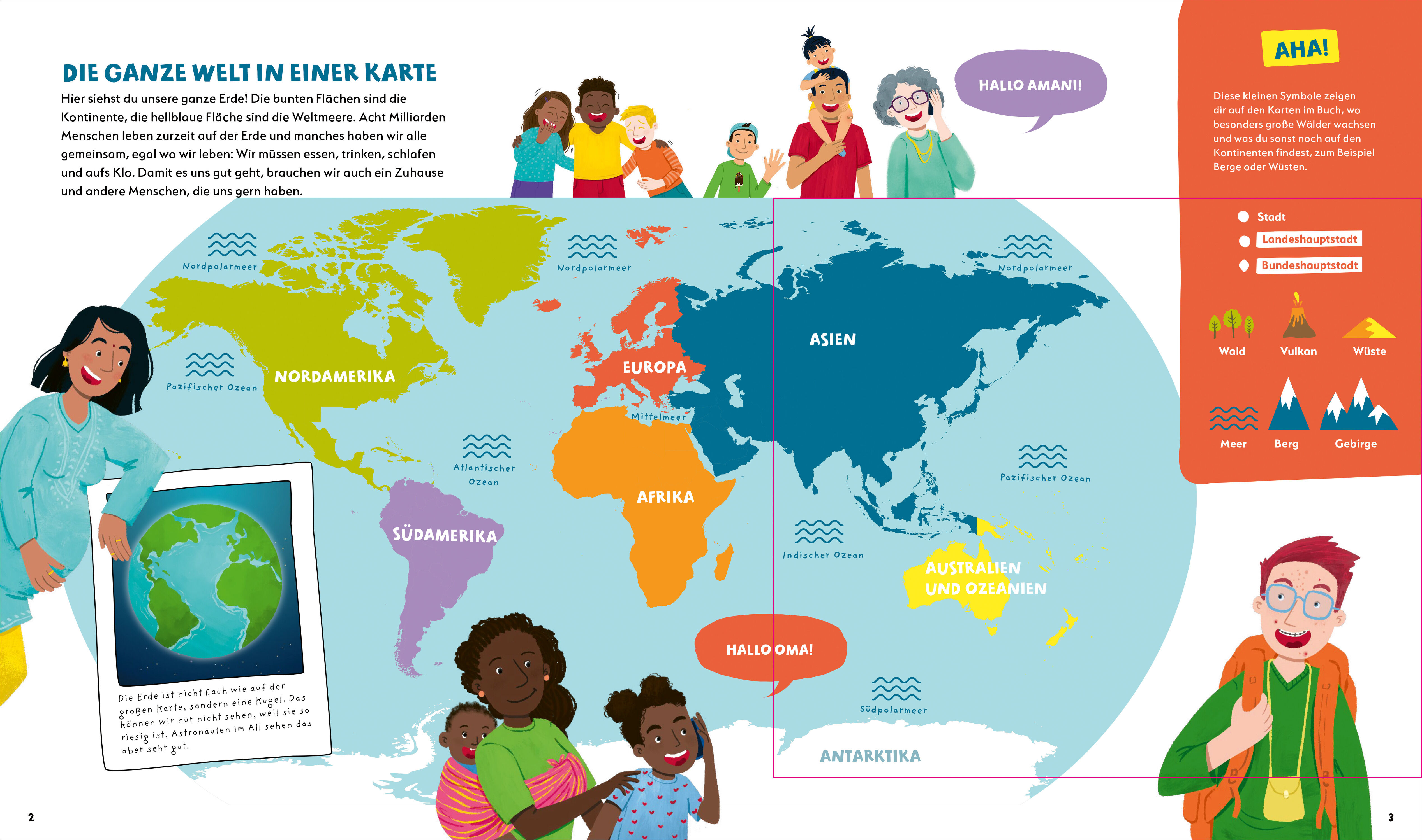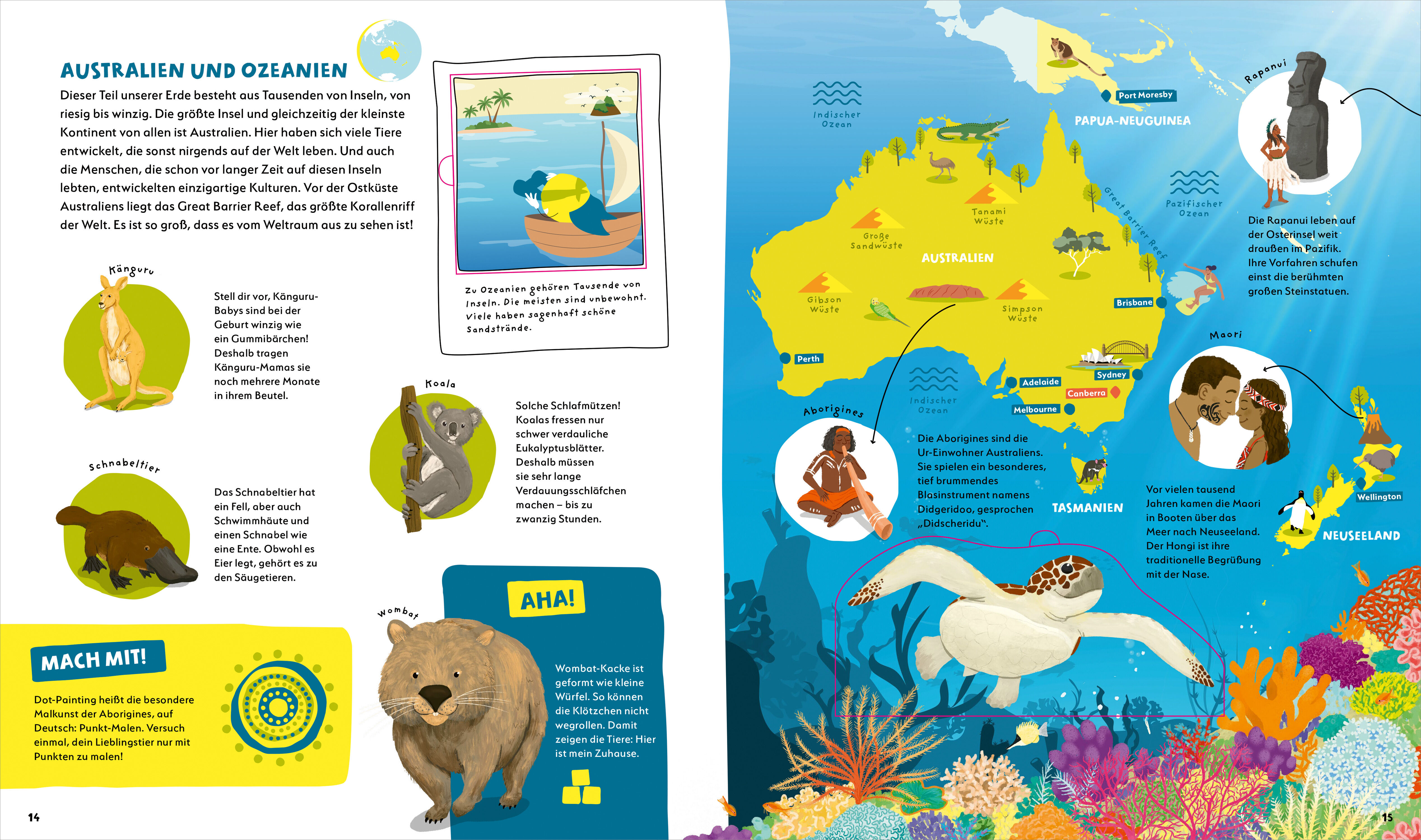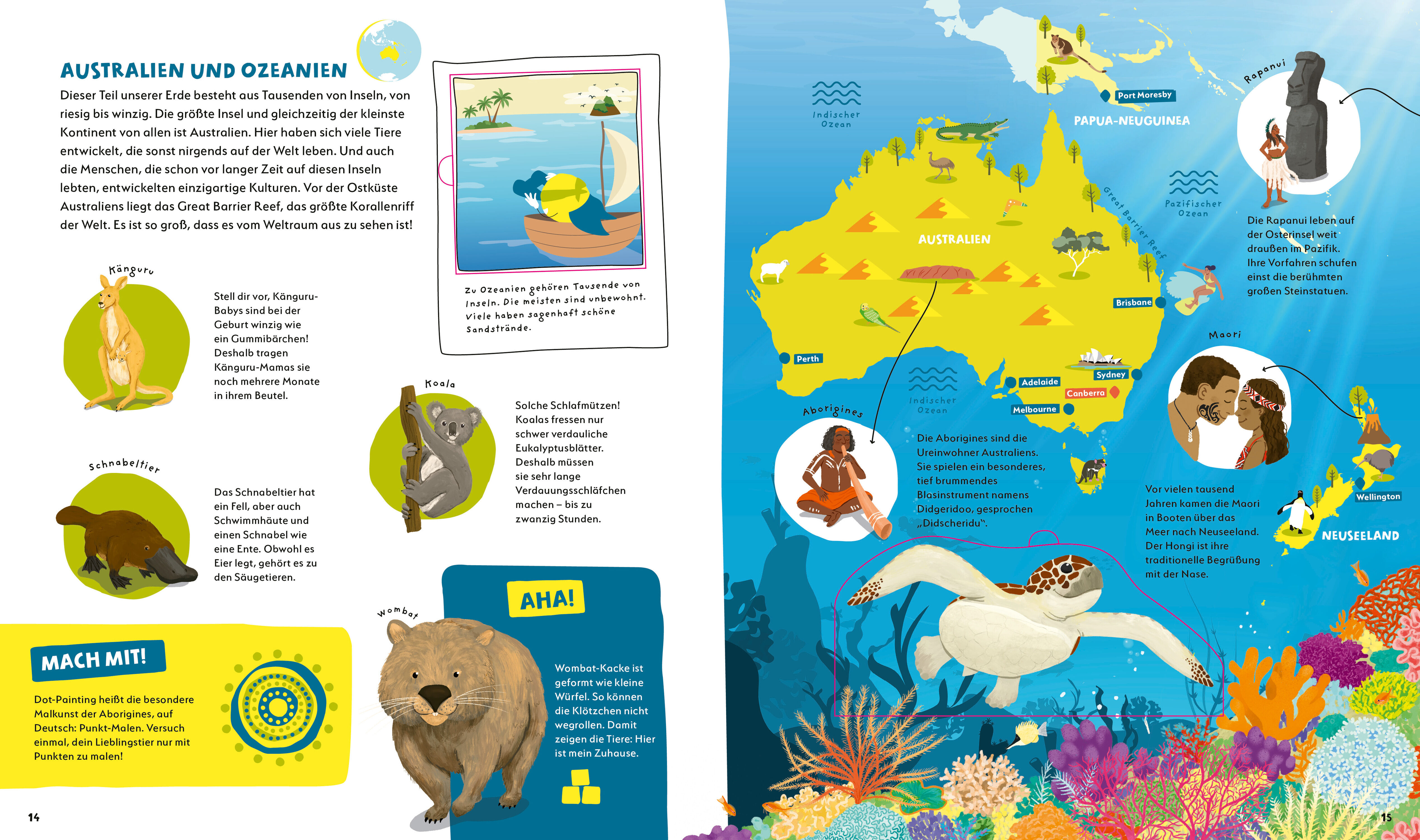 Jedes Land ein Abenteuer! Kinder entdecken die Forschungsstation im ewigen Eis, folgen den Dinospuren, erforschen die Tiere im Regenwald und schwimmen mit Schildkröten um die Wette. Wo gibt es den Regenbogenberg? Wo steht ein Weltraumbahnhof? Wer weiß, wo es e...