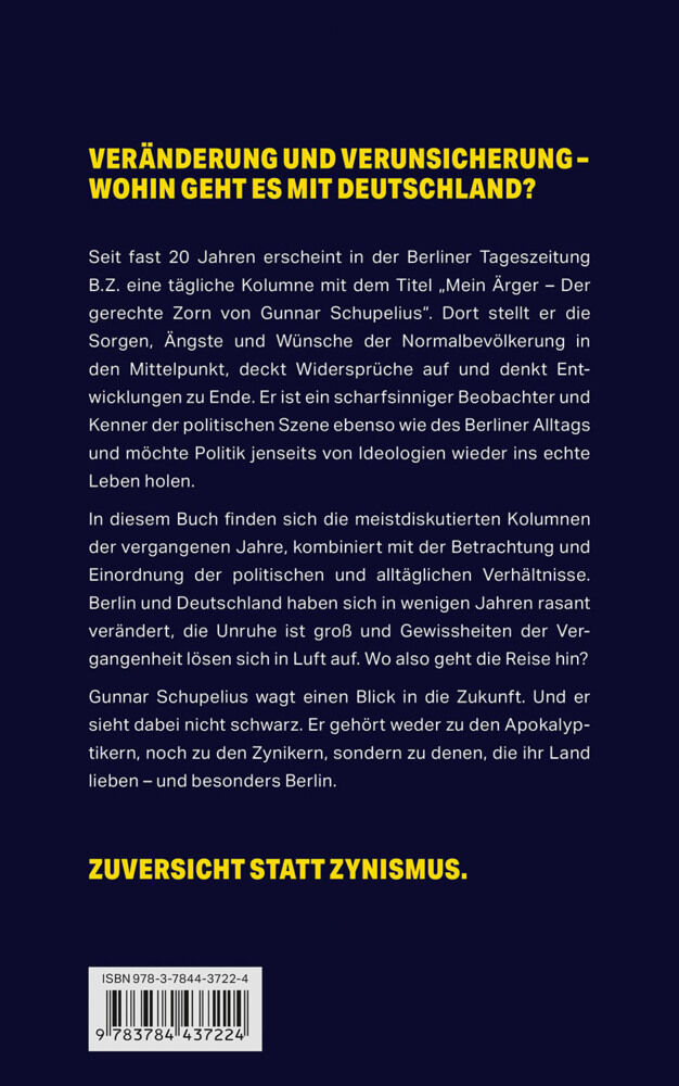Seit fast 20 Jahren stellt Gunnar Schupelius die Sorgen, Ängste und Wünsche der Normalbevölkerung ins Zentrum seiner B.Z.-Kolumne Mein Ärger, deckt Widersprüche auf und denkt Entwicklungen zu Ende. Er ist ein scharfsinniger Beobachter und Kenner der politische...