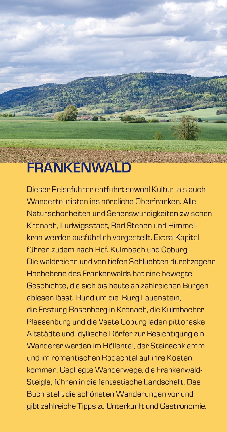 Dieser Reiseführer entführt sowohl Kultur- als auch Wandertouristen ins nördliche Oberfranken. Alle Naturschönheiten und Sehenswürdigkeiten zwischen Kronach, Ludwigsstadt, Bad Steben und Himmelkron werden ausführlich vorgestellt. Extra-Kapitel führen zudem nac...