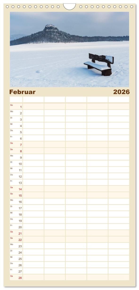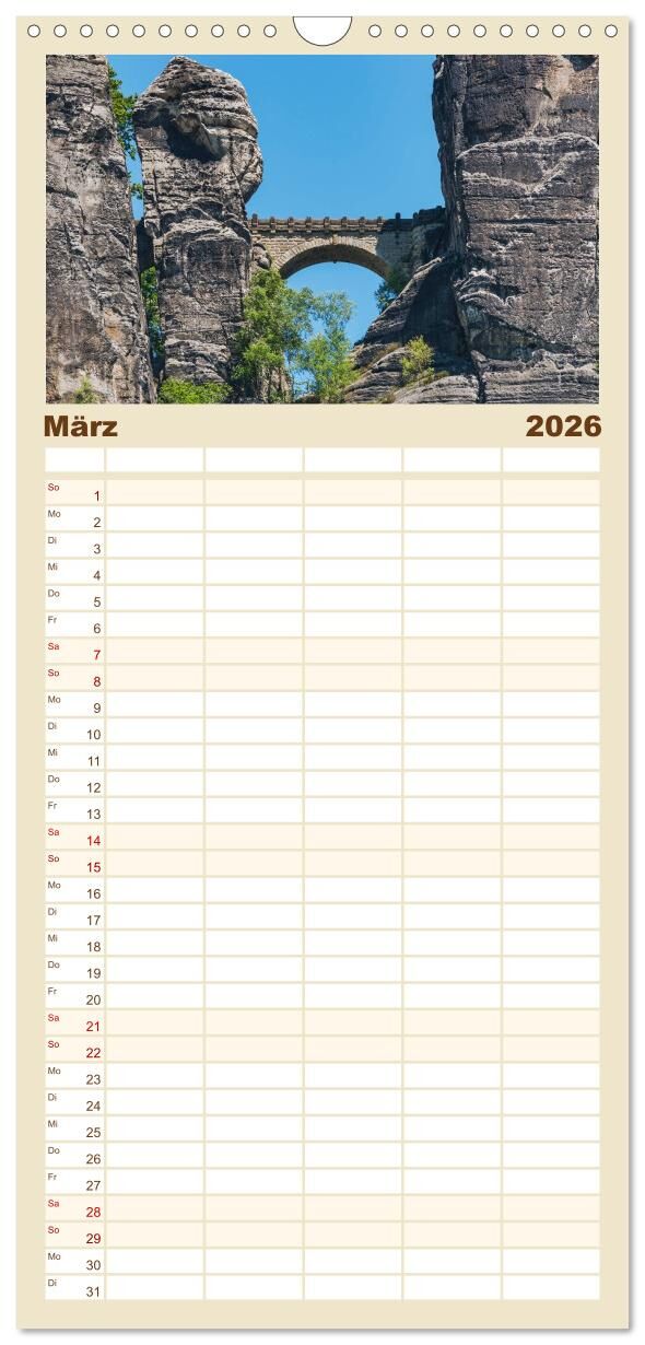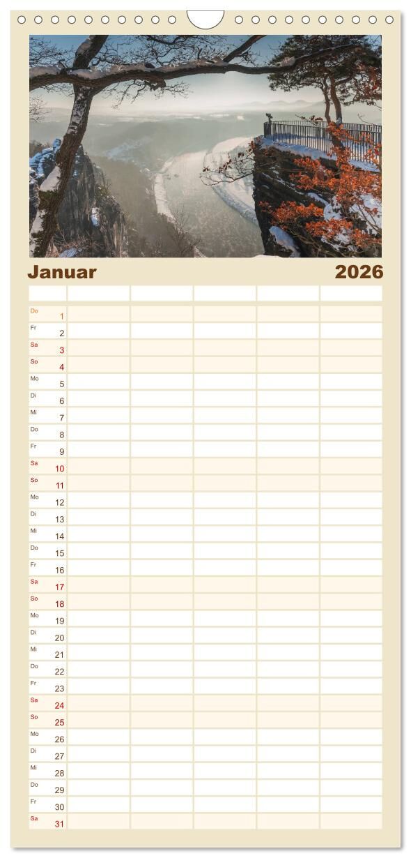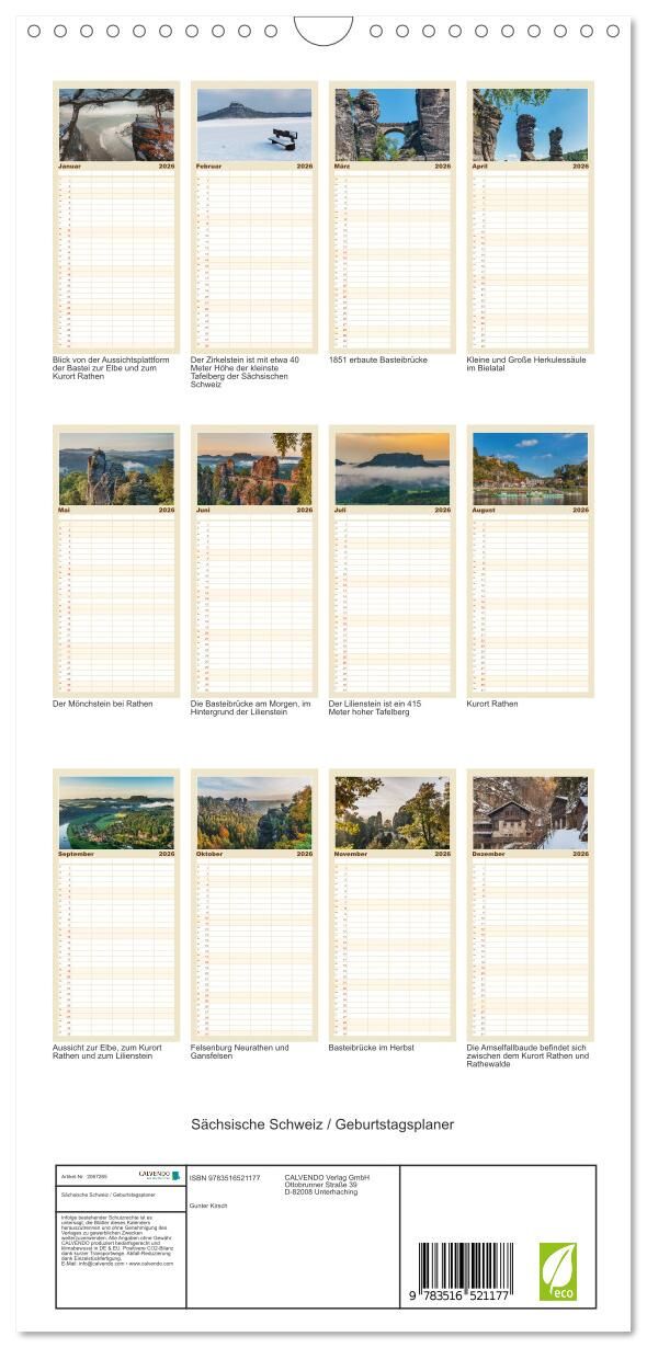 Planen Sie das Jahr mit Fotografien bekannter Orte in der Sächsischen Schweiz. Diese, durch bizarren Felsen bekannte Landschaft, wurde auch schon von berühmten Romantikern wie Caspar David Friedrich, Carl Gustav Carus und Ludwig Richter entdeckt, bereist und g...
